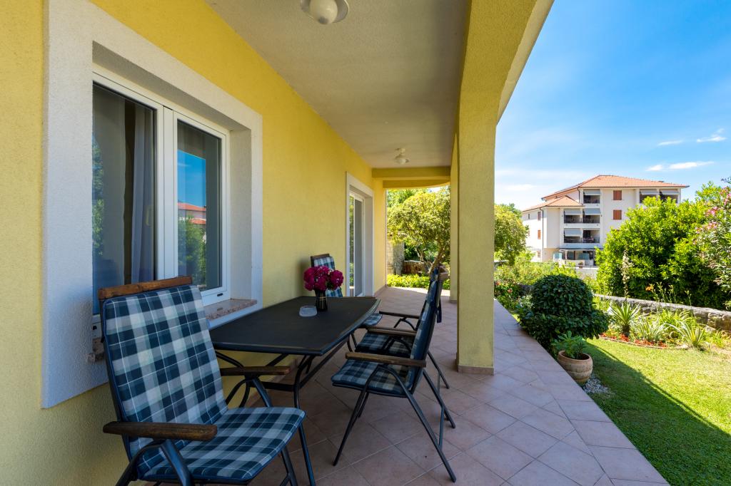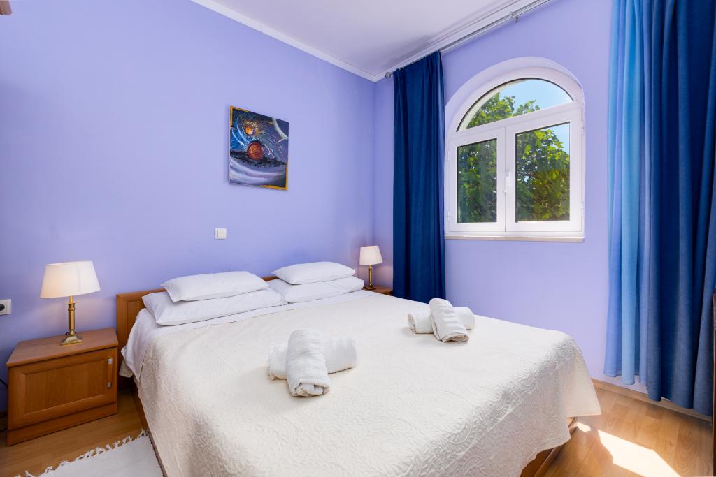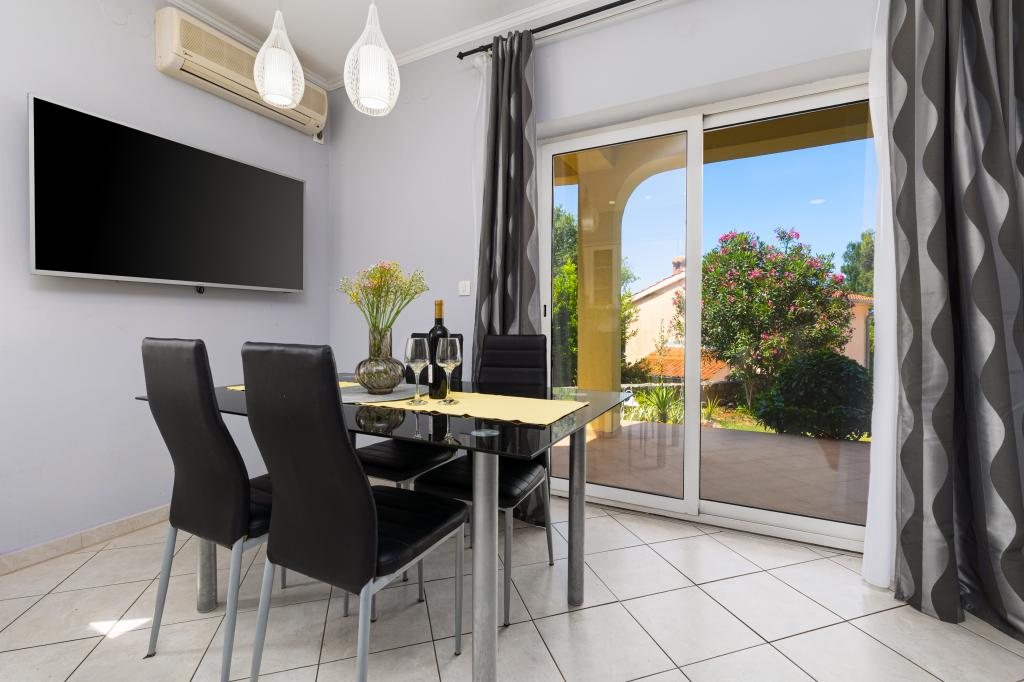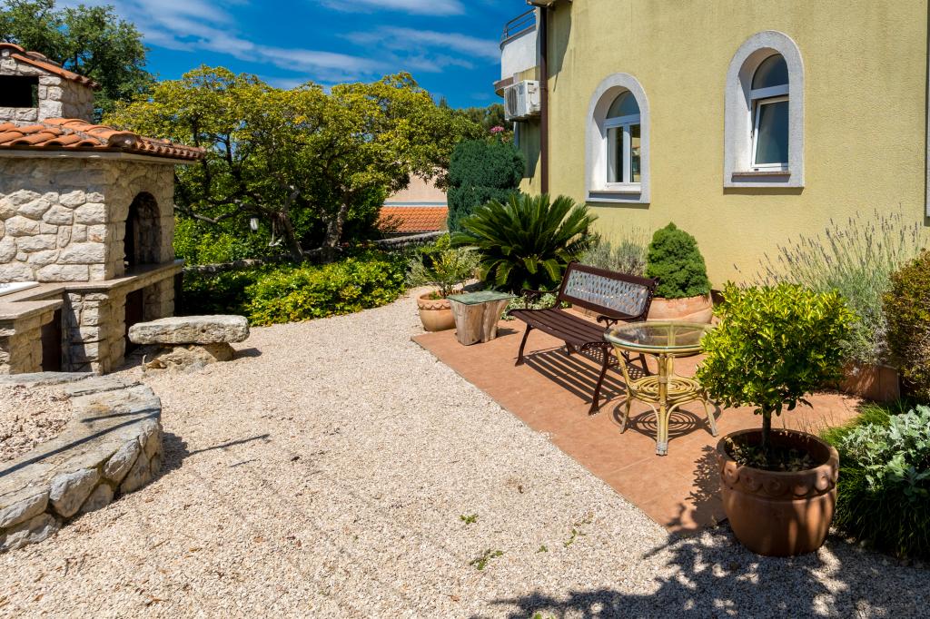 Una casa accogliente e ordinata situata in un ambiente tranquillo, con un bellissimo giardino paesaggistico e una terrazza coperta ideale per vivere all'aperto. Il giardino è decorato con cura, con prato, fiori e piante mediterranee, e offre privacy e un'atmosfera piacevole per il riposo e il relax. Il ristorante e la spiaggia sono a soli due minuti a piedi dalla casa.