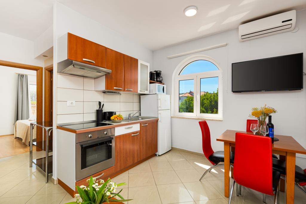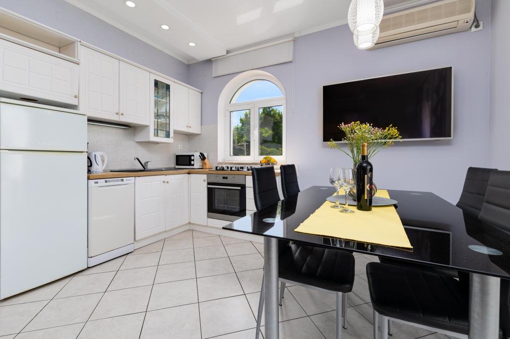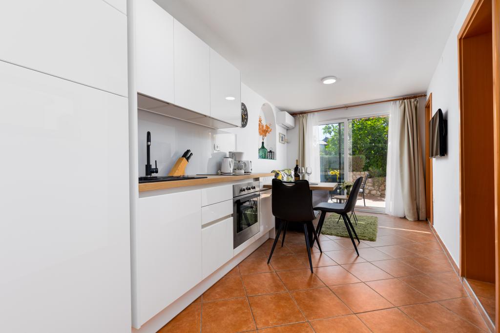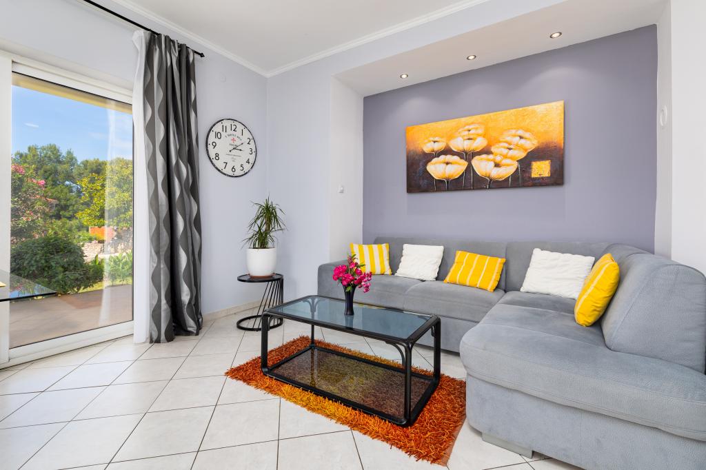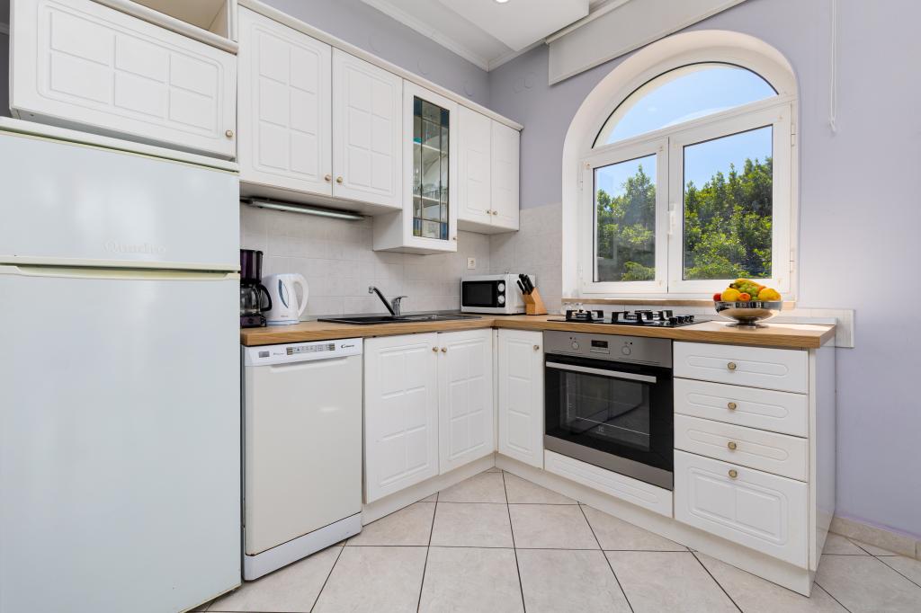 Una casa accogliente e ordinata situata in un ambiente tranquillo, con un bellissimo giardino paesaggistico e una terrazza coperta ideale per vivere all'aperto. Il giardino è decorato con cura, con prato, fiori e piante mediterranee, e offre privacy e un'atmosfera piacevole per il riposo e il relax. Il ristorante e la spiaggia sono a soli due minuti a piedi dalla casa.