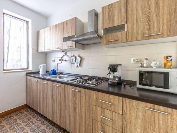 Al primo piano è la capacità appartamento per 8 persone. Esso contiene quattro camere da letto con letti matrimoniali. Nel soggiorno c'è anche un tavolo da pranzo. Dall'uscita sala da pranzo per un piccolo balcone con tavolo e sedie. La cucina è attrezzata con tutti gli elettrodomestici da cucina e utensili.