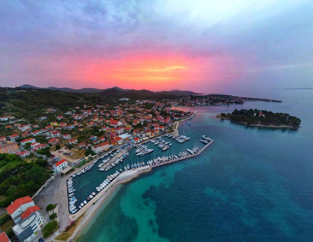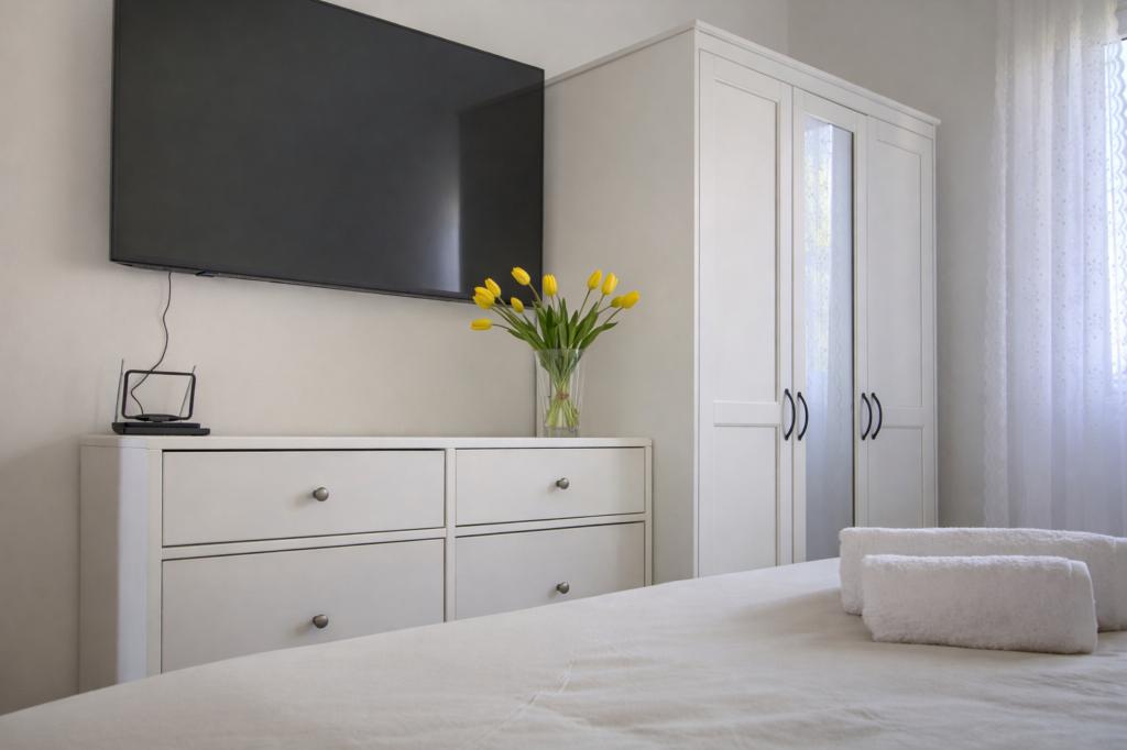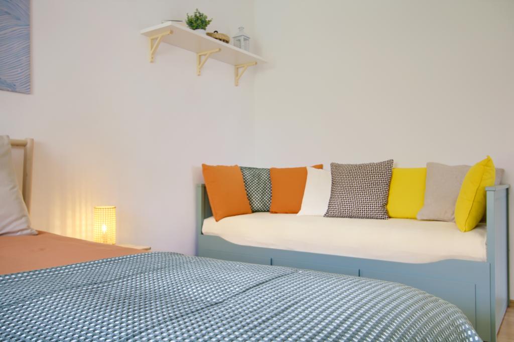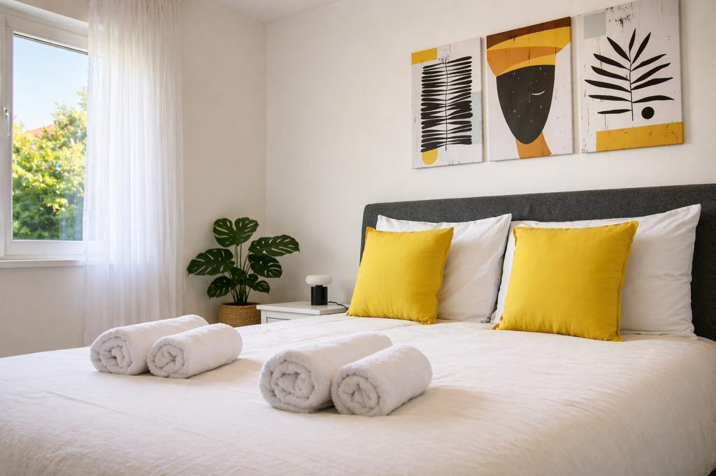 Situato in prima fila sul mare, questo grazioso e luminoso appartamento offre la perfetta combinazione di comfort e atmosfera mediterranea. Con una splendida vista sul giardino e un ambiente tranquillo, è ideale per famiglie o gruppi fino a 4 persone + 1 ospite aggiuntivo. Di fronte alla casa si trova una spiaggia di ciottoli, perfetta per una nuotata mattutina o per rilassarsi la sera con il suono delle onde, mentre a soli 20 minuti a piedi si trova la famosa spiaggia sabbiosa di Jaz. La posizione è estremamente comoda: nelle immediate vicinanze si trovano ristoranti, negozi e tutti i servizi essenziali, facilmente raggiungibili a piedi, senza bisogno di auto. L'appartamento è completamente attrezzato per un soggiorno confortevole e spensierato e include aria condizionata, connessione internet Wi-Fi, macchina da caffè, frigorifero, forno e Smart TV in camera, offrendo tutto il necessario per rilassarsi dopo una giornata trascorsa al mare. Lo spazio emana un'atmosfera allegra e rilassata, perfetta per una vacanza spensierata al mare e per godersi lo stile di vita mediterraneo.