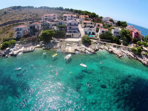 Atlas appartamenti sono situati in una casa privata vicino al tranquillo villaggio di Primosten Esso. Gli appartamenti si trovano vicino al mare. Gli appartamenti sono di recente costruzione anno 2014 e mai affittato. Ci sono due appartamenti moderni e climatizzati. Gli appartamenti dispongono di: cucina, soggiorno con divano letto, un bagno e due camere da letto con sei posti letto. Ogni appartamento dispone di un parcheggio e di una terrazza con una magnifica vista sul mare.