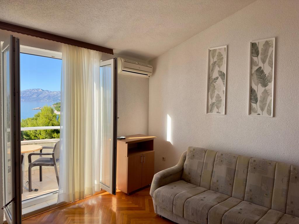 L'appartamento 2 + 2 è molto confortevole. Abbiamo tutto il necessario per essere felici ... una buona attrezzatura e, soprattutto, una bella vista sulle montagne e sul mare. Ammirare l'alba e il tramonto sorseggiando del vino in terrazza è quello che stavamo aspettando.. Così siamo tornati di nuovo.... stessa camera, stessa vista e bei ricordi. I proprietari sono molto gentili e disponibili, le camere sono di alto livello di pulizia... C'è davvero tutto... a parte la dotazione standard, ci sono asciugamani, asciugacapelli, ferro da stiro, tutto quello che si vorrebbe portare con sé, ma non già posti in macchina.