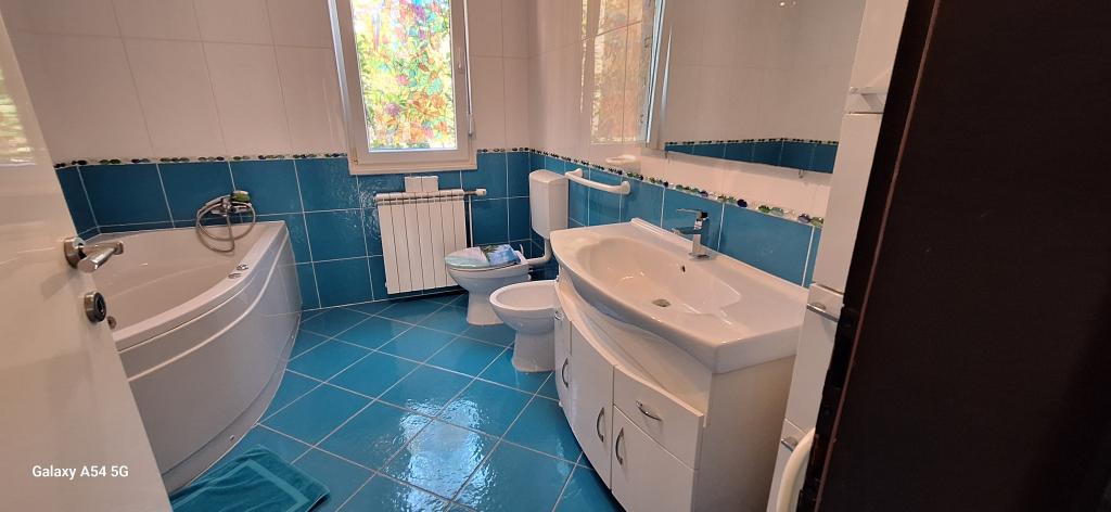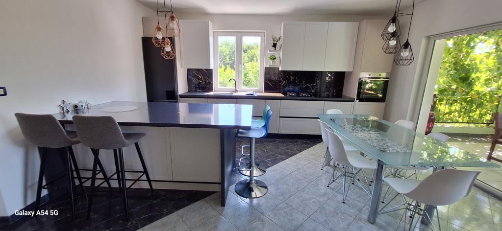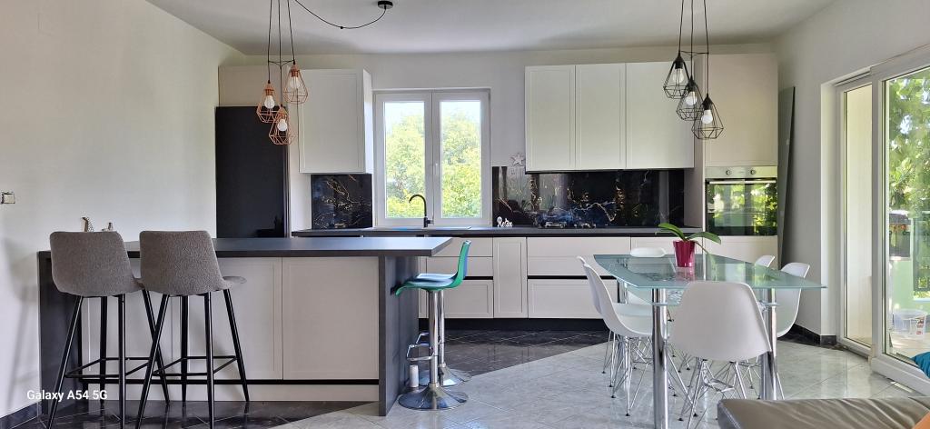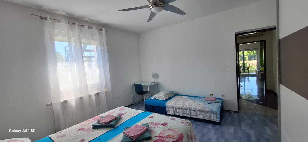 Scopri il vero lusso nel nostro Art Apartment a Pola, situato nella splendida Istria. Questo spazioso appartamento può ospitare fino a 6 persone in 100 metri quadrati di superficie abitabile. È composto da 2 camere da letto e 2 bagni, perfettamente progettati per il vostro comfort e relax. Piano terra della casa di 100 m² + 29 m² di balcone + 600 m² di giardino con trampolino. Gli ospiti hanno accesso a cucina, sala da pranzo, soggiorno, corridoio, 2 camere da letto con letto matrimoniale + un letto supplementare in ogni camera. Ampio bagno con vasca. Piccolo bagno con doccia. Ampia terrazza di 20 m². Vista sul bosco.