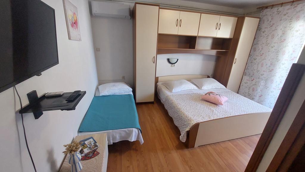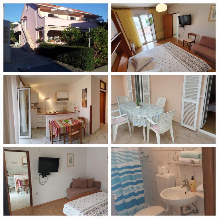 Affittiamo appartamenti completamente attrezzati e climatizzati (per 2-5 persone) + TV SAT/LCD, ciascuno con terrazza o balcone + posto auto nel cortile e internet ad alta velocità. Offriamo anche camere climatizzate per 2-3 persone, ciascuna con la propria terrazza, WC/WC e la possibilità di utilizzare una cucina completamente attrezzata, sala da pranzo (SAT/LCDTV) e una piacevole terrazza esterna con mobili da giardino. Siamo situati vicino ad una bellissima spiaggia di sabbia e ciottoli (200-250 m) e a tutti gli altri servizi necessari per una vacanza estiva spensierata e piacevole (negozi, ristoranti, pizzerie, bar sulla spiaggia e caffè, strutture ricreative, programmi per bambini...) . Dal centro storico dell'isola di Rab con la sua ricca storia siamo a soli 20 minuti a piedi lungo una bellissima passeggiata in riva al mare.
