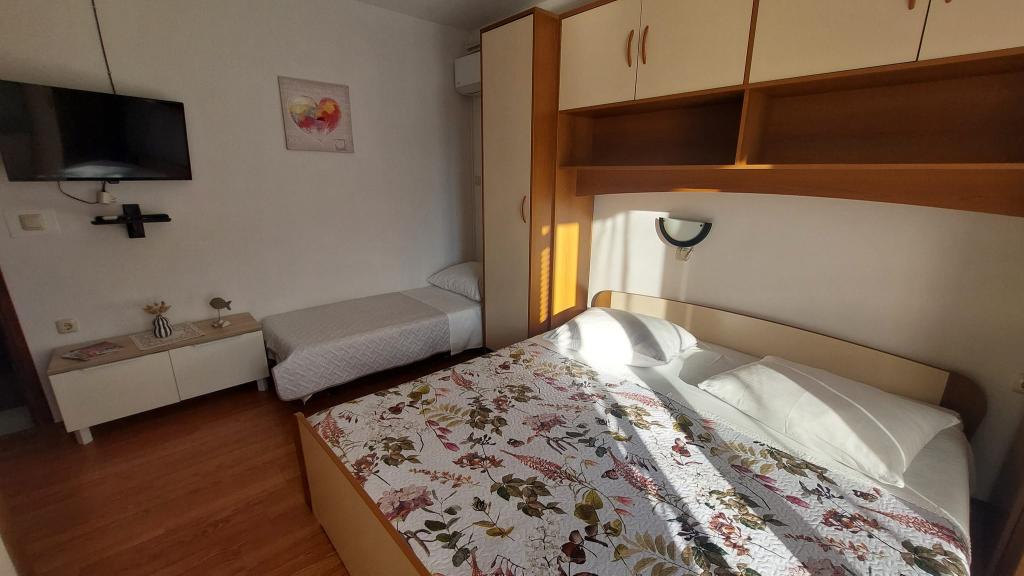 Tutto è perfetto! Appartamento pulito, piccolo balcone ottimo per 2 persone. Parcheggio all'ombra. Negozio e panetteria 2 minuti a piedi. La signora Sanja e sua madre, gentilissime, ci hanno regalato pomodori e peperoni fatti in casa in 2 occasioni. Al centro circa 20-30 minuti a piedi. Consiglio una passeggiata per arrivarci, e ritorno in barca per circa 15 kune a persona fino a Marina 3 e da lì altri 2 minuti a piedi fino all'appartamento. Assolutamente niente di cui lamentarsi! Saluti