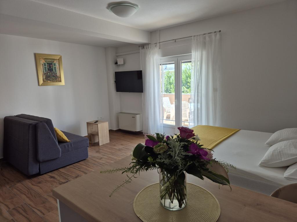 La casa si trova a 5 minuti a piedi dalla spiaggia cittadina e anche a 5 minuti a piedi dalla parte vecchia della città; nelle vicinanze si trovano negozi, bar, ristoranti e altri servizi necessari per un soggiorno in questo posto. L'appartamento monolocale al 1° piano ha un ingresso diretto tramite scale solo per il suo appartamento.