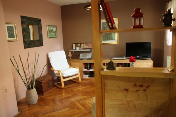 Situato in una casa, circondata da una natura incontaminata e paesaggi di montagna, Eva Appartamento composto da camera da letto e soggiorno, cucina e bagno. Vi sentirete i benvenuti, ma la strada che sembra un parco da favola. La parte posteriore della casa vi sorprenderà con una bellissima vista della natura e del frutteto dove si può comodamente sedere e godere o di camminare e correre. Le mele raccolte, pere, prugne o mele cotogne, da frutteti dove riproduzione naturale, delizieranno ogni foodie. Dell si nasconde dietro la casa e una zona barbecue dove è possibile sedersi su una panchina e godersi i profumi di portare.