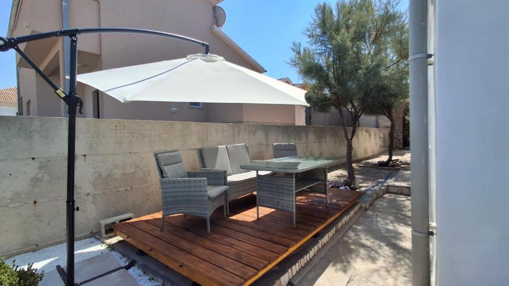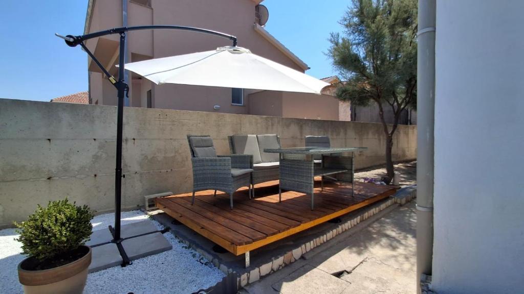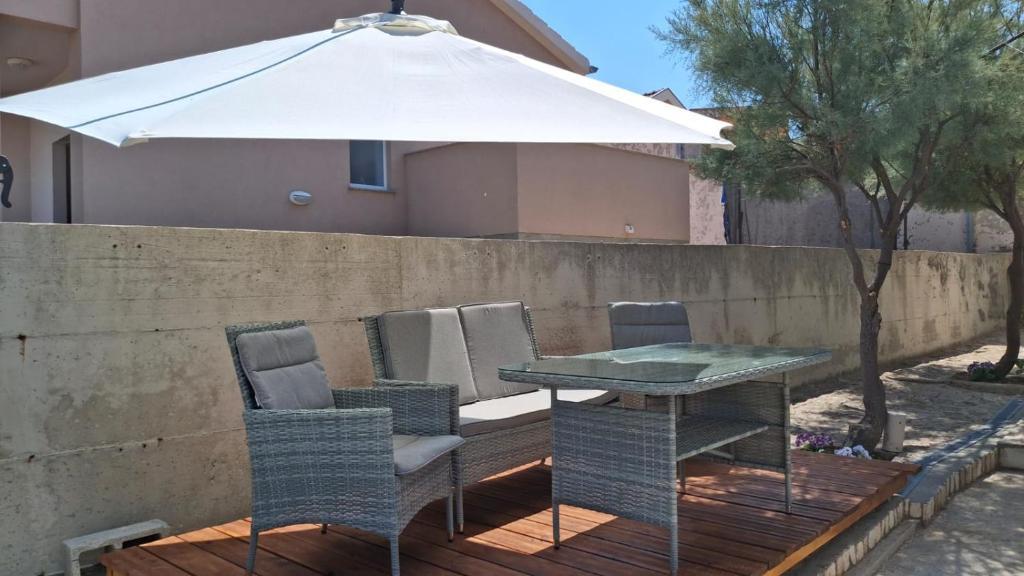 I nostri ospiti hanno a disposizione 2 appartamenti completamente indipendenti, parcheggio e un giardino completamente attrezzato. Nel giardino si trova una zona barbecue e una doccia esterna. L'appartamento offre una splendida vista sul mare e sul monte Velebit, mentre la spiaggia è raggiungibile in soli 3 minuti a piedi.