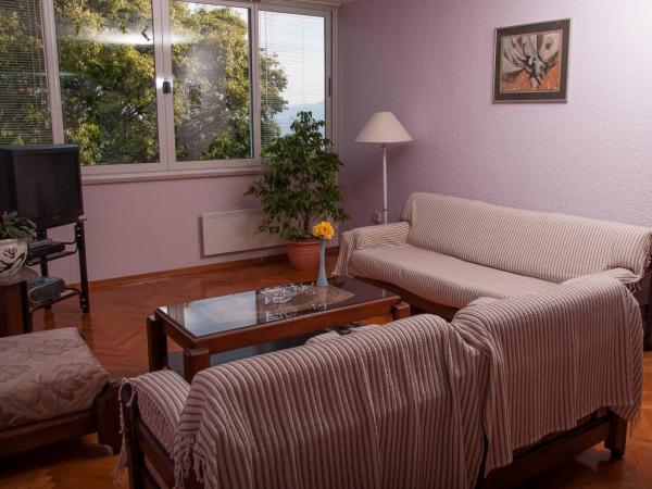 Veronika appartamento è situato in una zona tranquilla del fiume, l'edificio a due piani con un giardino e un parcheggio privato. Dal centro della città è a soli 4 km da Opatija 6 km. Grazie alla sua posizione gode di ottimi collegamenti con Fiume e Abbazia. Gli appartamenti hanno vista mare. Nelle vicinanze si trova: un nuovo centro sportivo e ricreativo con un complesso di piscine e di una spiaggia, campi da tennis, nuovo centro di atletica e lo stadio di calcio. L'appartamento ha due camere da letto, un ampio soggiorno, cucina completamente attrezzata, bagno e balcone. L'appartamento è dotato di: Letto-4-2 Base letti aggiuntivi, aria condizionata, radio e 2 TV, TV satellitare, internet, lavatrice con asciugatrice, lavastoviglie, asciugacapelli, ferro da stiro, frigorifero con congelatore, riscaldamento, parcheggio