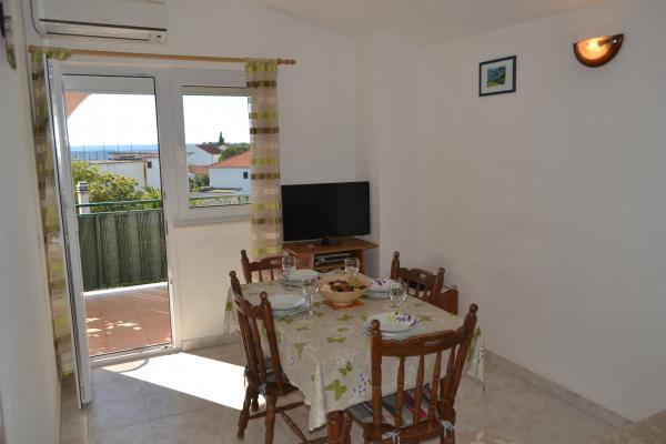Appartamenti con vista mare completamente arredato, dalla spiaggia a 50 metri dal centro 10 minuti. Ogni appartamento è dotato di aria condizionata, con la possibilità di utilizzare Internet. Ogni appartamento ha un bagno, una cucina separata con un bollitore e forno. L'appartamento dispone di due camere da letto, ogni camera ha un letto matrimoniale. Una camera si apre su una terrazza con un balcone, mentre l'altro ha una grande finestra. L'appartamento è composto da soggiorno, sala da pranzo e un divano letto. Gli appartamenti dispongono di TV satellitare. Ogni appartamento dispone di una terrazza con tavolo e sedie e ombrellone. La casa dispone di un posto auto, e ogni appartamento ha il proprio posto di parcheggio davanti casa. Inoltre, l'uso degli ospiti è offerto e coperto barbecue.