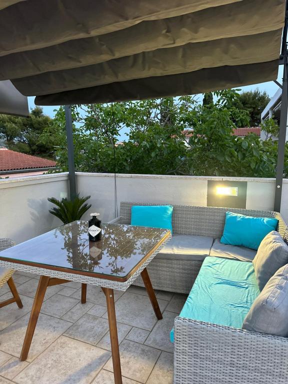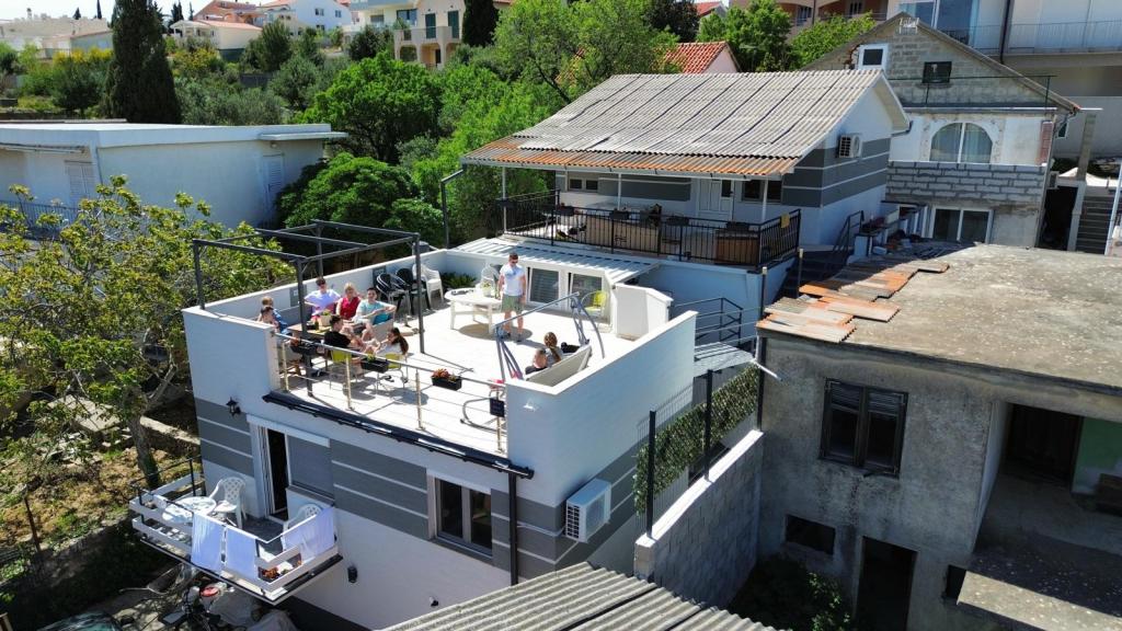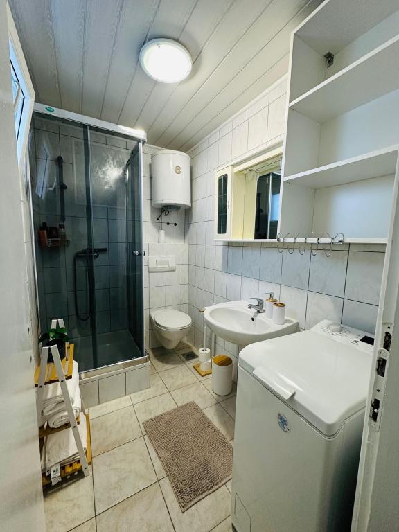 Ampia casa indipendente che può ospitare fino a 16 persone, ideale per famiglie numerose o gruppi di amici che desiderano trascorrere una vacanza al mare. Gli ospiti hanno a disposizione un'ampia terrazza di 50 m² con una splendida vista sul mare, perfetta per momenti di convivialità, pranzi e cene all'aperto e per ammirare i tramonti. Sulla terrazza è presente anche un barbecue a gas, ideale per preparare deliziosi pasti in un'atmosfera rilassata. Davanti alla casa è disponibile un parcheggio per 5 auto e 5 biciclette, perfette per esplorare i dintorni e fare piacevoli passeggiate in riva al mare. La casa gode di una posizione eccellente, a soli 150 m dal mare e dalla spiaggia, immersa nel verde e all'ombra naturale, offrendo una perfetta combinazione di comfort, privacy e vicinanza a tutti i servizi per una vacanza indimenticabile.