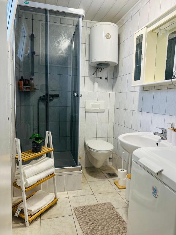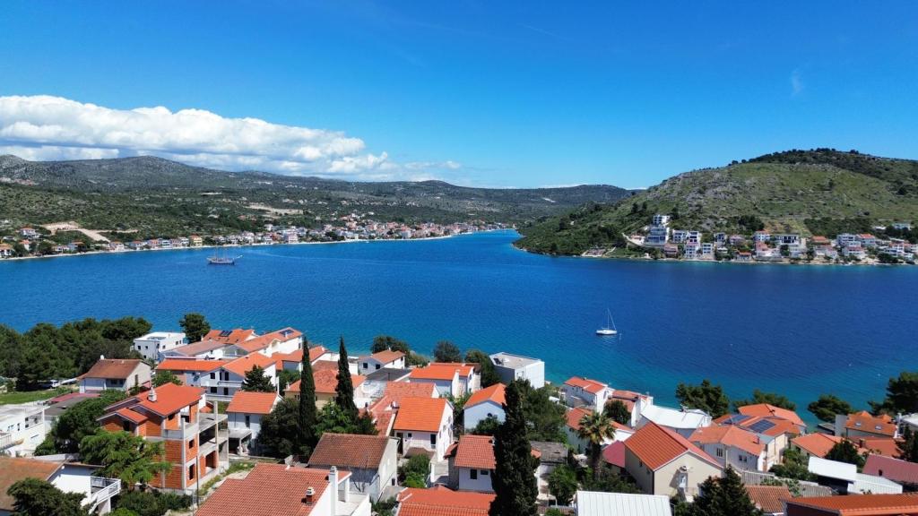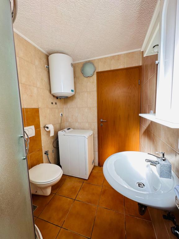 Gli appartamenti distano solo 150 metri dal mare e dalla spiaggia, immersi in un piacevole ambiente naturale con numerosi alberi che offrono ombra e un'atmosfera ideale per rilassarsi durante le calde giornate estive. Sulla spiaggia è presente una doccia e, proprio accanto, un bar, perfetto per un caffè mattutino o una bevanda rinfrescante in riva al mare. Il supermercato Tommy è raggiungibile con una piacevole passeggiata lungo il mare in soli 12 minuti, il che rende la posizione molto comoda per una vacanza piacevole e spensierata.