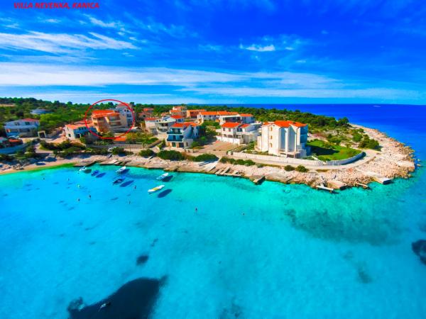 Kanica è un piccolo villaggio situato nel cuore del Mar Mediterraneo. Questo luogo è famoso per il suo mare pulito, bellissima natura, la gente cordiale, ed è caratterizzato da pace e tranquillità che è adatto per tranquilla vacanza in famiglia. C'è un ristorante Sandokan dove è possibile provare molte specialità dalmate. Villa Nevenka si trova a 30 metri dalla spiaggia, che è in parte di sabbia e in parte pavimentato. La casa è costruita su tre piani, al piano terra di un appartamento privato dove viviamo noi (i padroni di casa), al primo piano c'è un ampio appartamento A3, e al secondo piano ci sono appartamenti A1 e A2. La casa dispone di un ampio giardino e parcheggio privato per almeno 6 auto, anche di fronte alla casa c'è un gazebo con camino, che gli ospiti sono in grado di utilizzare. Vicino Kanice, ci sono posti bellissimi come il centro storico di Trogir (25 km), Primosten (18 km), Rogoznica (10 km). Le città più distanti Sibenik (45 km) e Split (53 km). Nelle vicinanze si trova il famoso croato nazionale e