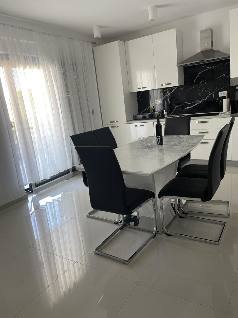 Appartamenti completamente arredati in stile moderno, con cucina, lavastoviglie, frigorifero, congelatore, piano cottura, forno, stoviglie complete, lavatrice, tutte le camere sono climatizzate, internet gratuito, parcheggio privato gratuito, il tutto in una zona tranquilla, a pochi minuti a piedi dalla bellissima spiaggia, mare pulito e limpido, dove potrete nuotare, fare immersioni e praticare windsurf. Vicino al centro commerciale. Vicino al centro città, dove nella piazza centrale si svolgono vari eventi, concerti e feste locali. Spiaggia di ciottoli. Potete visitare Marina Frapa a Rogoznica, il lago Occhio del Drago in mezzo alla montagna e il Labirinto di Lavanda.
