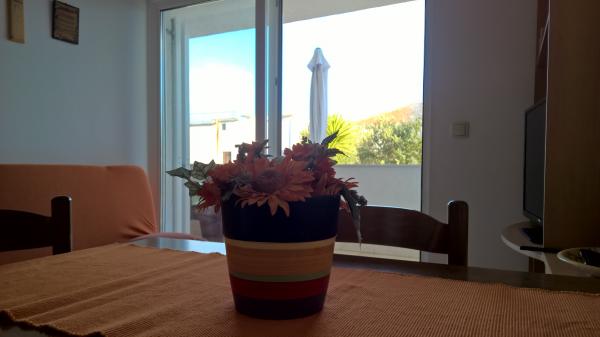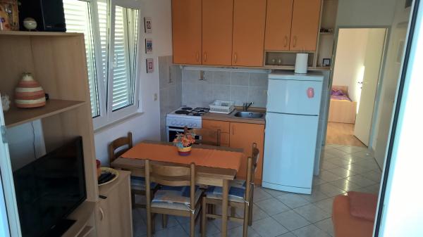 Appartamento situato in una baia tranquilla, vicino alla spiaggia e il lungomare. La struttura dispone di 2 camere da letto, bagno, cucina con zona pranzo. L'appartamento ha una terrazza, un tavolo, sedie e ombrellone. Di fronte l'appartamento ampio cortile con camino. Vicino al centro, caffè e ristoranti.