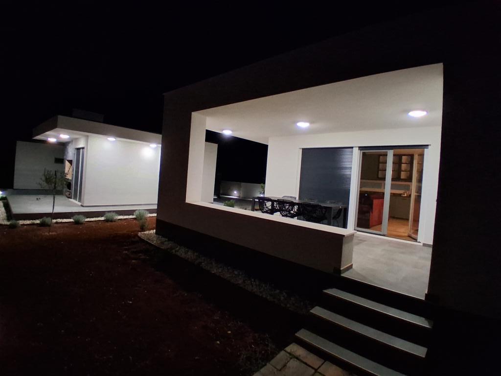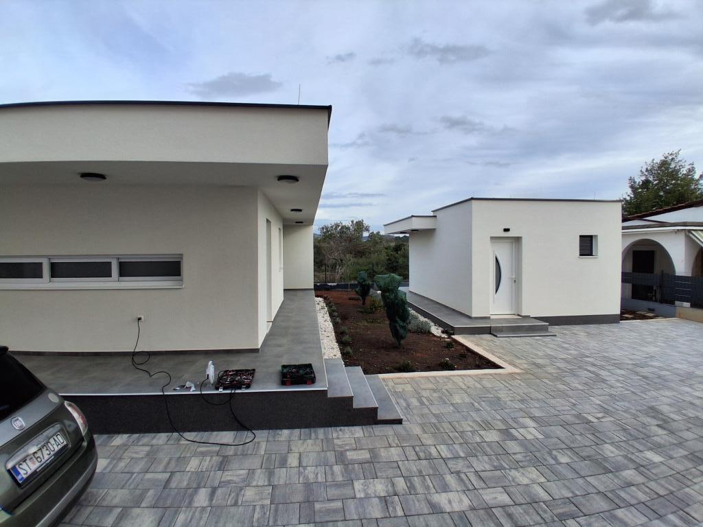 Nuova casa a un piano con una superficie abitabile di 70 mq e una terrazza coperta di 30 mq, situata in una posizione tranquilla, lontano dalla strada, con vista sull'uliveto. L'ampia terrazza è protetta dalla vista delle case vicine e garantisce la privacy. La spiaggia è raggiungibile a piedi, a pochi minuti dalla proprietà. È disponibile un parcheggio privato per tre auto. Dispone di due camere da letto climatizzate (1 con letto matrimoniale grande, 2 con due letti singoli), un ampio soggiorno climatizzato con cucina e sala da pranzo, un ampio bagno con WC. La casa è dotata di tutti i mobili ed elettrodomestici nuovi, smart TV e terrazza con un grande tavolo per 6 persone.