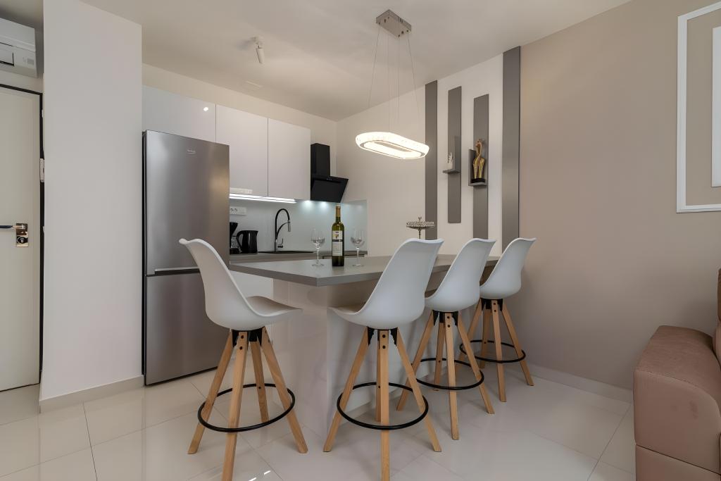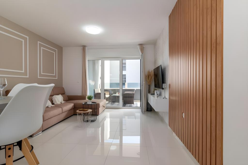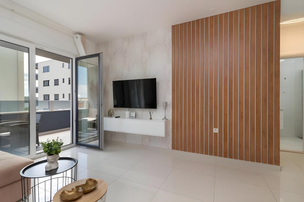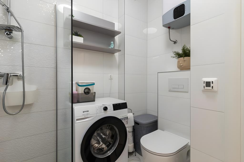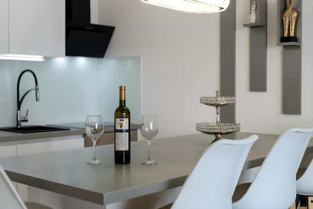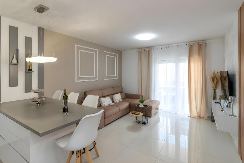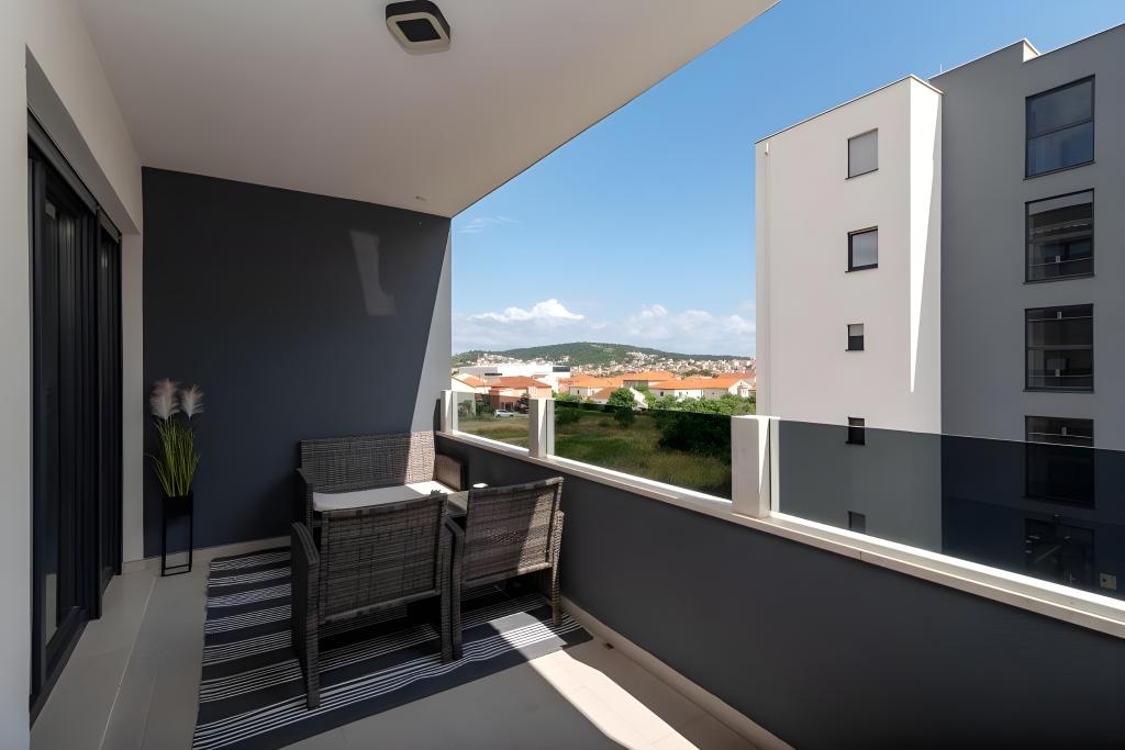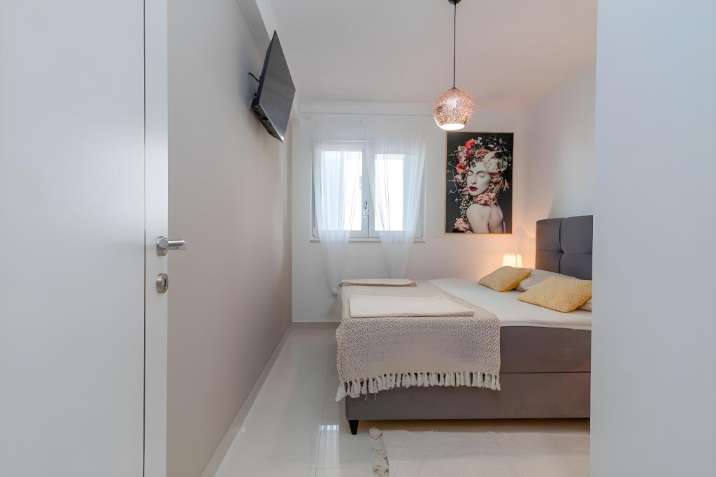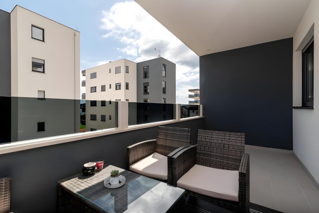 L'alloggio è situato in un moderno edificio di recente costruzione, in un ambiente tranquillo e ben curato, ideale per una vacanza rilassante e spensierata. La struttura offre agli ospiti una piscina all'aperto all'interno dell'edificio, perfetta per rilassarsi nelle giornate calde, e un parcheggio gratuito. L'appartamento è composto da una camera da letto con un comodo letto matrimoniale, un soggiorno con divano letto, una cucina completamente attrezzata, un bagno e un balcone. Lo spazio è arredato in stile moderno con particolare attenzione al comfort e alla funzionalità, creando un'atmosfera piacevole e rilassante. Il balcone arricchisce ulteriormente l'ambiente e offre il luogo ideale per gustare un caffè al mattino o rilassarsi la sera. La posizione garantisce privacy e tranquillità, offrendo al contempo un facile accesso a tutti i principali servizi della zona, rendendo questo alloggio una combinazione ideale di relax e praticità.