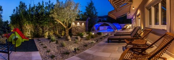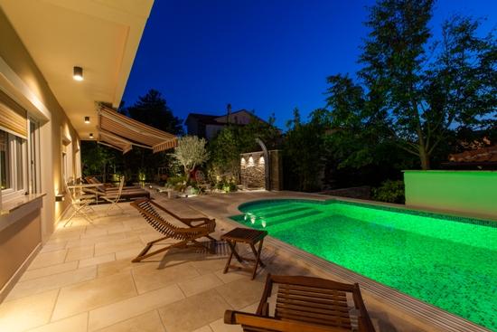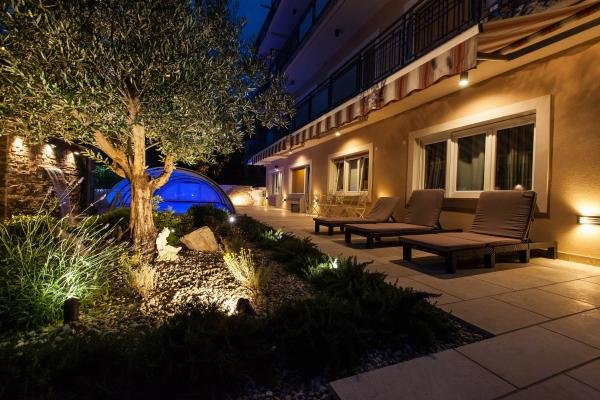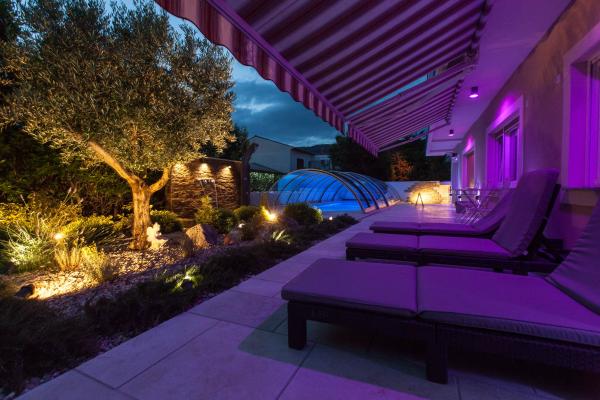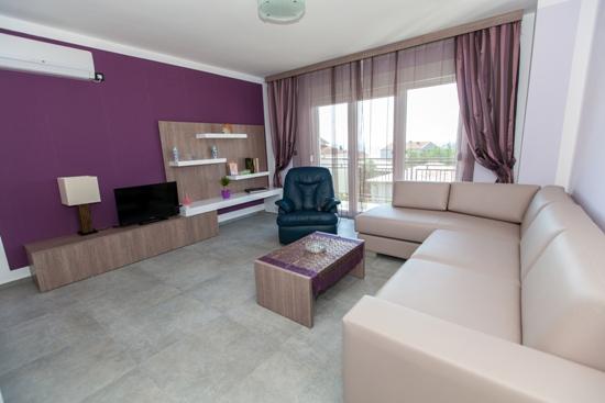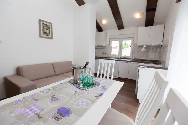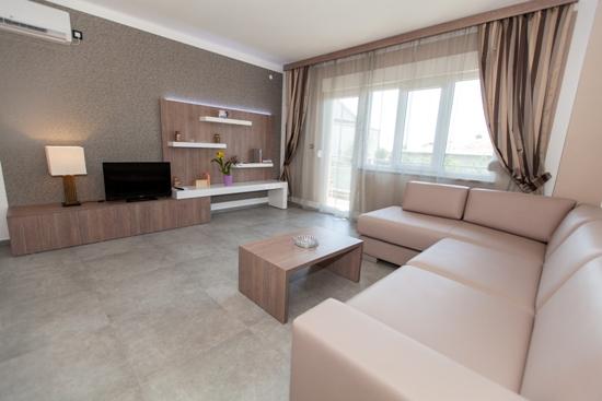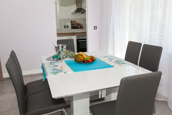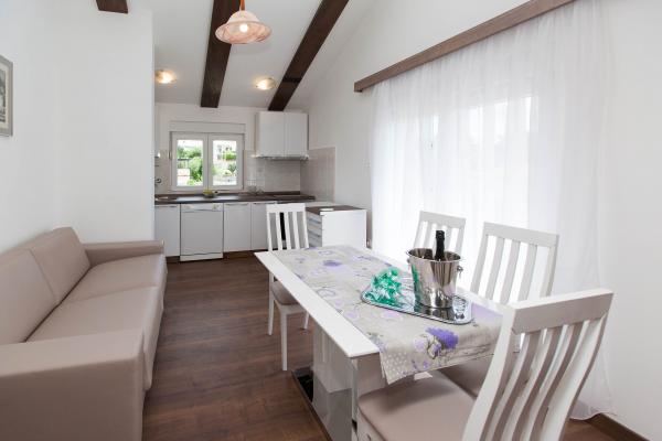 La tassa di soggiorno non è inclusa nel prezzo.Ambiente domestico arricchito da un giardino mediterraneo e di una grande piscina con un sistema per il riscaldamento e il raffreddamento, idromassaggio, getti idromassaggio aria e nuoto controcorrente, zona solarium con sedie a sdraio, e lo spazio per socializzare. Nel giardino giochi per bambini con altalena e scivolo, in cui l'antistress posizionato substrato. Gli ospiti molto tranquille unità inverter split. Gli ospiti hanno a disposizione accesso gratuito a Internet (Wi-Fi) e TV satellitare. Appartamenti per 4 e 5 è un parcheggio Aiuto nell'organizzazione di viaggi dentro e fuori della regione, come i laghi di Plitvice, Krk, Rab, Istria. Il numero di base di letti - 2 letti supplementari 2 extra di 15 euro a posto letto / notte. I bambini sotto un anno di soggiorno gratuitamente.