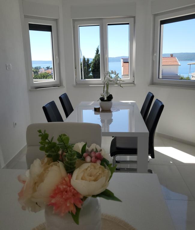 Nuovi appartamenti nel centro di Selce, una piccola e pittoresca cittadina sulla costa adriatica, molto vicino a Crikvenica. Si trovano al piano terra rialzato e al primo piano della casa e sono spaziosi e ariosi. Entrambi gli appartamenti sono composti da due camere da letto, bagno, corridoio, cucina "open space", sala da pranzo, soggiorno e balcone. Offrono una splendida vista sul mare e sulla spiaggia. Gli appartamenti si trovano a 2 minuti a piedi dal centro della città, dai negozi, dal lungomare, dalla spiaggia, dai ristoranti e dai bar. Il parcheggio è nel cortile della casa. Aria condizionata, Wi-Fi e parcheggio sono inclusi nel prezzo dell'alloggio. Il prezzo include la tassa di soggiorno e la pulizia dell'appartamento. ANIMALI NON AMMESSI.