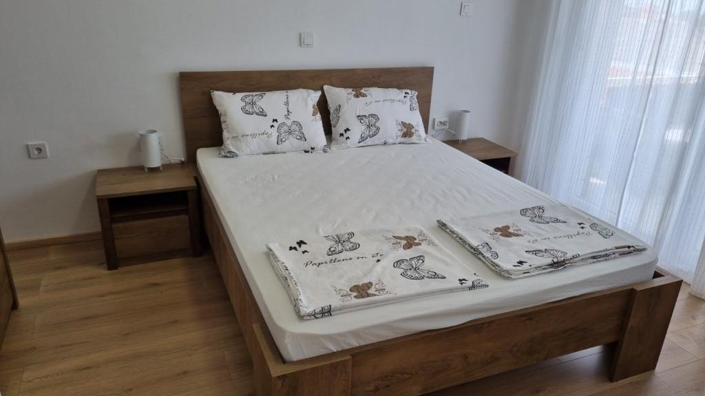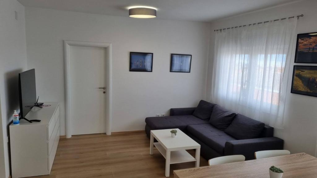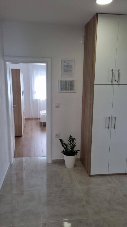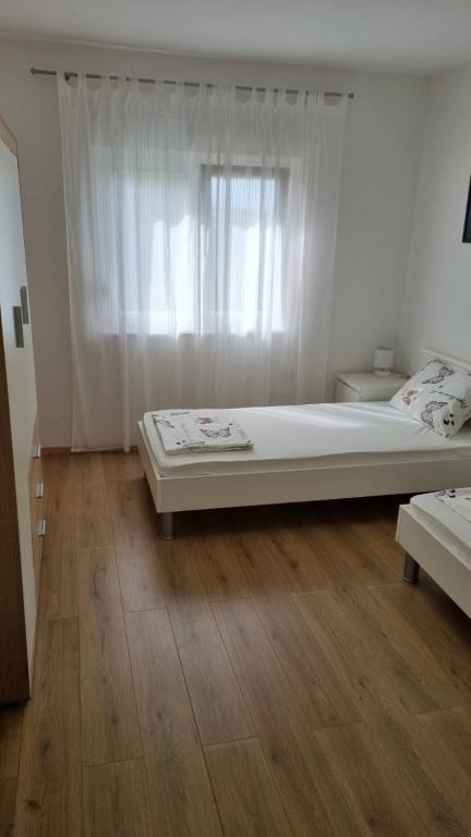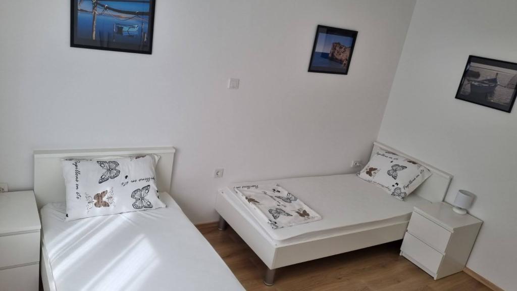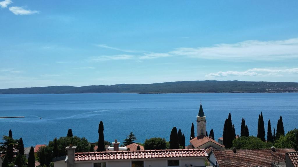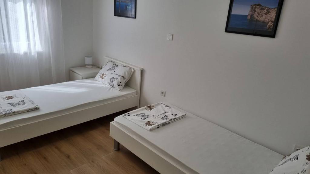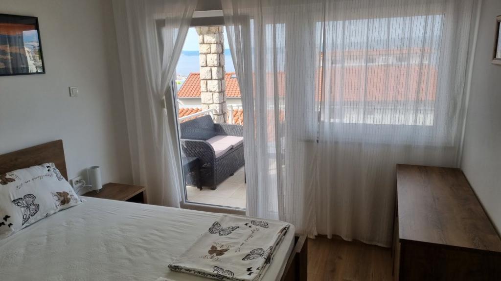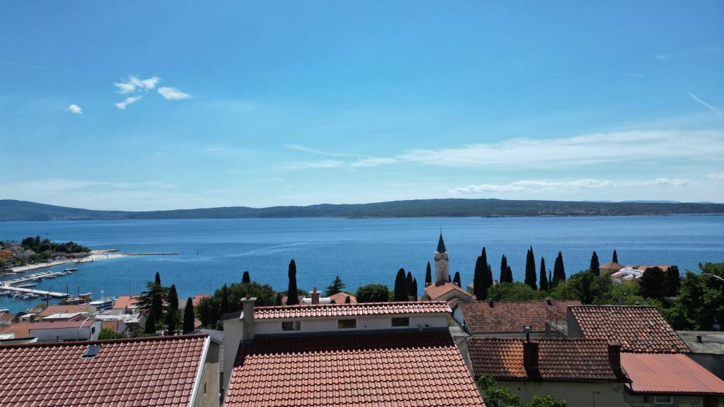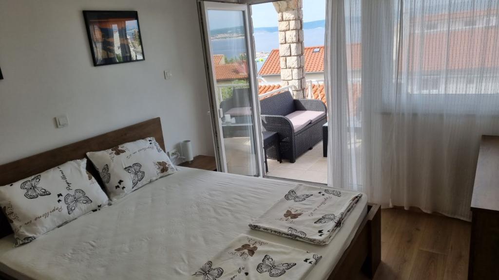 Affitto un appartamento con due camere da letto, ampio terrazzo e vista mare. L'appartamento si trova in una strada tranquilla, a 200 metri dal mare, dalla spiaggia e dal centro di Selce.