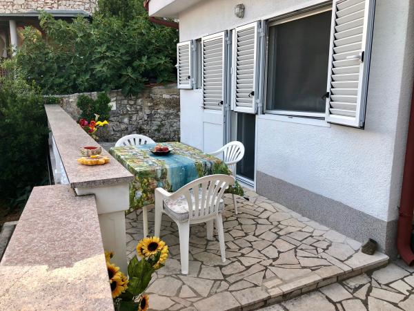 Appartamento completamente attrezzato (appartamento) in un cortile con terrazza, a 200 metri dal centro di Selce, dalla spiaggia e dai contenuti più importanti. Hai il tuo ingresso e la tua terrazza. Il parcheggio è sulla strada di fronte alla casa, ma non possiamo garantirlo se si desidera utilizzare l'auto ogni giorno.