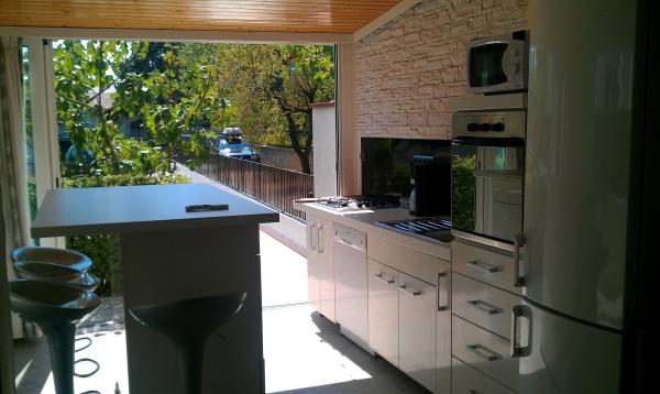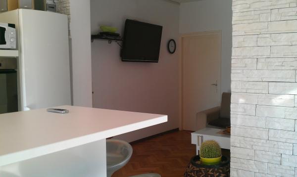 Appartamento per 4 persone + letto aggiunto, 2 camere da letto, cucina, bagno, soggiorno, giardino e terrazza. L'appartamento si trova al piano terra in un ambiente molto tranquillo con un ampio cortile in cui il barbecue all'aperto. L'appartamento è completamente ristrutturato con tutti gli elettrodomestici nuovi all'interno dell'edificio.