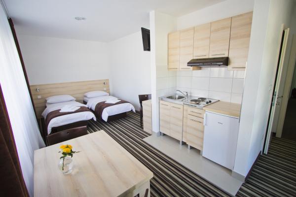 La tassa di soggiorno non è inclusa nel prezzo.Tutte le camere sono dotate di TV e TV via cavo, Wi-Fi e la propria aria condizionata. Il parcheggio è disponibile di fronte all'edificio ed è inclusa nel prezzo. Il prezzo comprende la pulizia della camera una volta alla settimana. Sono inoltre forniti asciugamani.