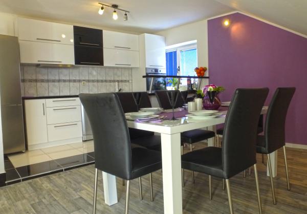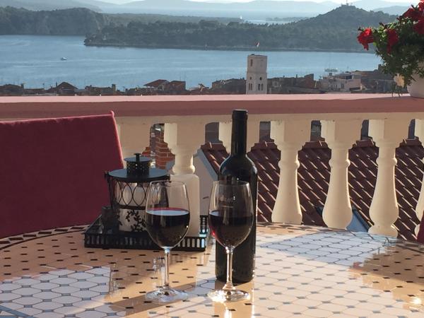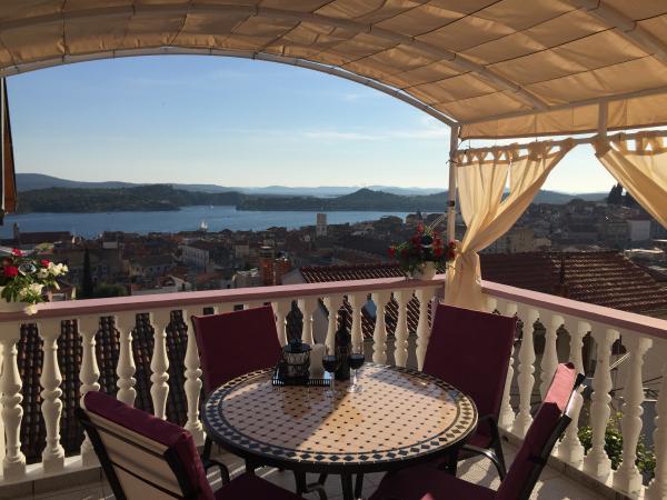 Appartamento Santina si trova a Sibenik, direttamente sotto il Barone fortezza, si trova a 5 minuti a piedi dalla cattedrale. James e 15 minuti a piedi dalla spiaggia. Le suite offrono una splendida vista panoramica della città, le isole vicine e la fortezza. Dalla terrazza si può vedere tutti i luoghi in cui ha girato una popolarissimi giochi della serie di Thrones. moderno appartamento è completamente rinnovato di recente e si trova in una moderna villa del 19 ° secolo. L'appartamento è dotato di aria condizionata, dispone di una cucina moderna, TV a schermo piatto, connessione internet, Wi-Fi, canali satellitari, lenzuola e asciugamani gratuiti. parcheggio gratuito situato nelle vicinanze dell'appartamento. Offriamo il trasporto di up alla stazione degli autobus o in treno per l'appartamento. Venite a vedere la bellezza di Sibenik e innamorarsi di una bella vista dalla nostra terrazza.