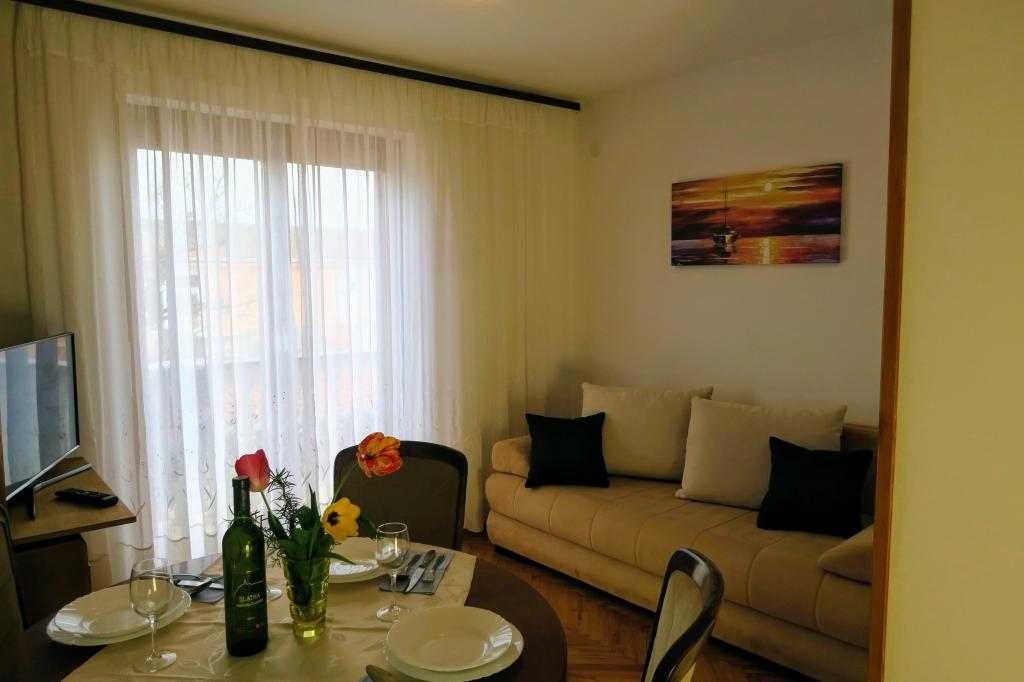 La casa si trova a circa 350 metri dal mare, dispone di bei balconi e terrazze, barbecue e un ampio parcheggio. La casa dispone di due appartamenti per due o tre persone con letti supplementari in entrambe le suite. La casa si trova nel parco e lontano dal mare circa 350m. Nel cortile è un barbecue a disposizione. Gli appartamenti dispongono di un televisore e satellitare, aria condizionata, internet, biancheria e cucine attrezzate e bagni. Entrambi gli appartamenti hanno una terrazza e un parcheggio.