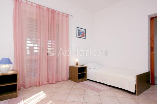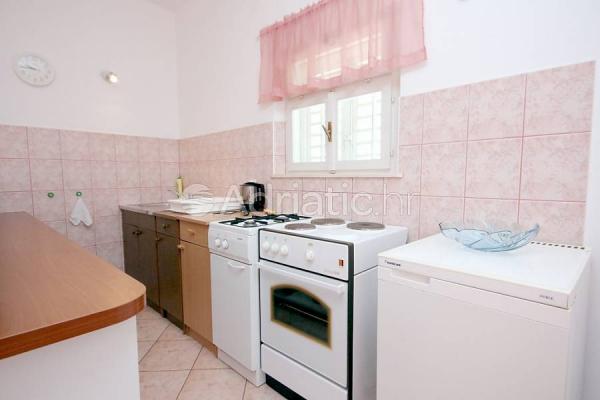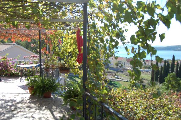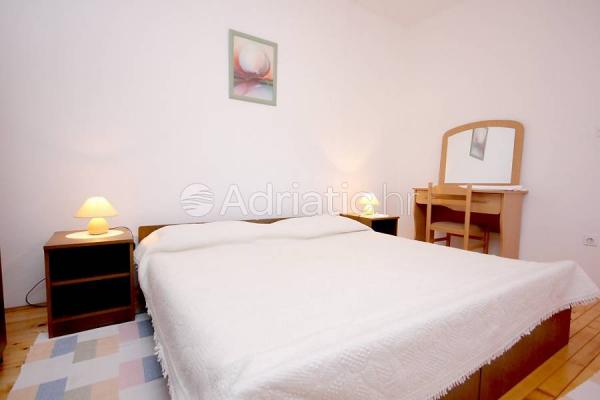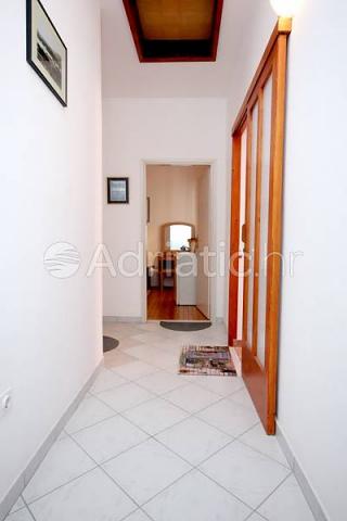 L'appartamento si trova al primo piano di una casa situata in una zona tranquilla immersa nel verde sale in prossimità del centro, con tutti i servizi (ristoranti, bar, negozi, cambio valute). Si compone di due camere da letto matrimoniali, due bagni e un ampio soggiorno con due letti aggiunti e una cucina. A causa della vastità (80m2) è l'ideale per la famiglia di vacanza di sei. Dispone di una spaziosa terrazza con vista sul mare e parcheggio.
