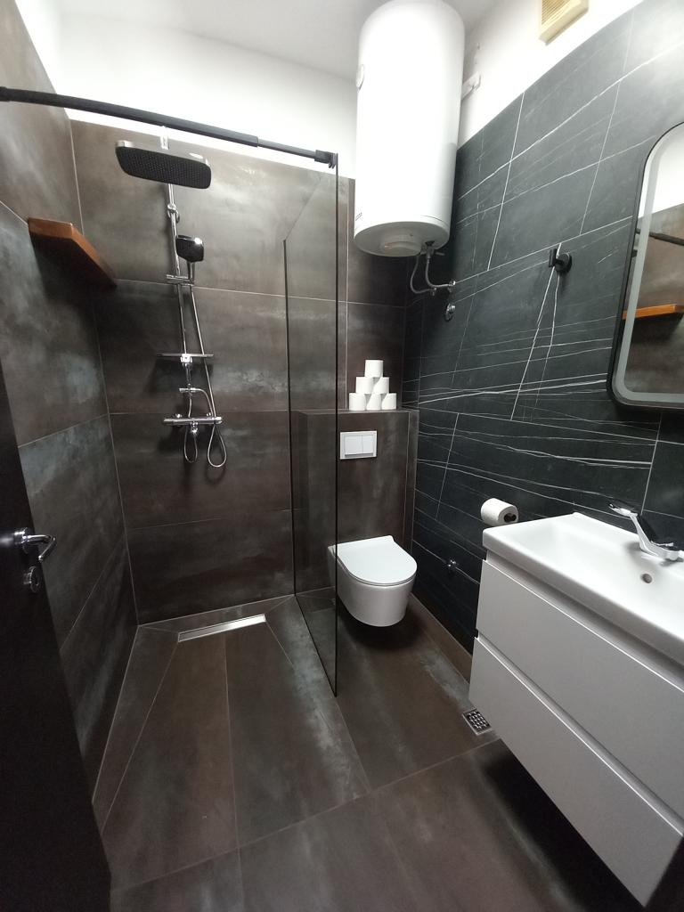 Gli appartamenti si trovano nelle immediate vicinanze della spiaggia, a soli 10 metri di distanza, con una splendida vista sul mare. Molto puliti, dotati di tutto il necessario. La proprietaria è molto gentile, disponibile e si prende cura dei suoi ospiti. Spiaggia attrezzata con ciottoli fini e doccia esterna. Il posto è in una zona tranquilla. Tuttavia, è vicino a bar, ristoranti e un parco giochi acquatico. Vicino alle escursioni per Trogir e Spalato. È possibile raggiungerli con i mezzi pubblici e in traghetto.