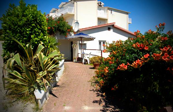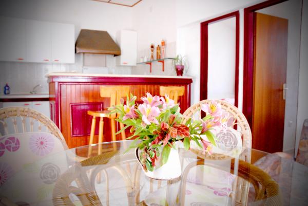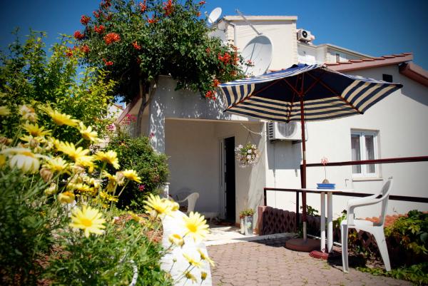 Questa Casa pulcino è di 60 m2 e può ospitare max 5 Persone. 2 CAMERE (1 Matrimoniale e 2 Letti Singoli con Lenzuola), CUCINA ATTREZZATA CON UN BAR (Piatti per Servire Alimenti e Bevande, Posate, Utensili, Lavastoviglie, Forno, Frigorifero, Congelatore, Forno a Microonde, Bollitore, Macchina per Caffè, Tostapane), 2 BAGNI (Lavatrice, Doccia, Asciugamani, Asciugacapelli), SOGGIORNO (Divano-Letto, Tavolo e Sedie, TV, Accesso Internet Wireless Gratuito, Aria Condizionata), TERRAZZA CON VISTA MARE (Tavolo e Sedie), Giardino Pieno di Fiori (3 Sedie a Sdraio, Swing e Barbecue), PARCHEGGIO GRATUITO POSTO. House si trova meno di 3 Minuti a Piedi dalla Spiaggia della Roccia e 5 Min a Piedi dalla Spiaggia di Sabbia, meno di 1 Min a Piedi dal Bellissimo Parco con un Campo di Gioco, 2 min a Piedi dalla Zona Piena di Ristoranti Tradizionali e Bar che offrono Pesce Fresco, Ortaggi Biologici e Frutta, Buoni Vini, Olio dOliva fatto in casa e Dolci Tipici di questo Clima, 5 min a piedi dal Centro.