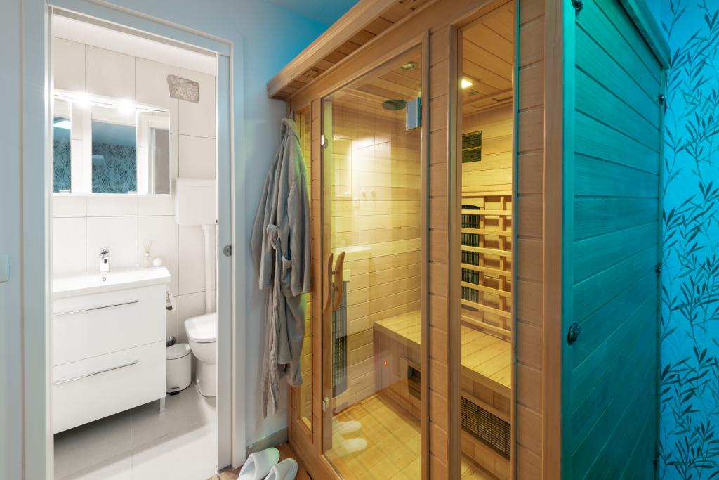 Questa villa rustica tradizionale splendidamente decorata è stata recentemente ristrutturata, ha un ingresso privato e si estende su 100 metri quadrati di spazio abitativo ad uso esclusivo, può ospitare 4 persone nelle camere e una persona in un letto supplementare nel soggiorno. Al piano terra avrete a disposizione un centro benessere, che comprende una sala fitness/palestra, una sauna a infrarossi e una vasca idromassaggio/jacuzzi per il vostro completo relax. Il bagno è adiacente alla palestra. Al primo piano si trova un soggiorno con Smart TV a schermo piatto (+ canali streaming maxTv), una sala da pranzo, una cucina completamente attrezzata e un bagno di servizio. Il secondo piano è composto da 1 bagno e 2 camere da letto: Camera da letto 1 - Due letti singoli Camera da letto 2 - Due letti singoli - Il bagno è dotato di lavatrice e asciugatrice - Ferro da stiro, asse da stiro - Aria condizionata in soggiorno/sala da pranzo, ogni camera da letto e la palestra/sala fitness - I bagni, la palestra/palestra e l'area sauna/jacuzzi sono dotati di riscaldamento a pavimento