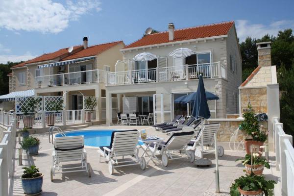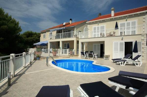 Mirula complesso è costituito da ville singole 8 +4 e tre appartamenti, una 2 +2 e 4 +2 uno. può ospitare un totale di 16 +10 persone oppure è possibile prenotare alcuni alloggi (ville e appartamenti). La villa dispone di una piscina che è stato progettato esclusivamente per gli ospiti della villa, ma se si prenota ville e appartamenti, insieme, gli ospiti possono anche utilizzare la piscina. Su ogni piano della villa c'è una cucina completamente attrezzata (piano cottura, forno, lavastoviglie, frigorifero, forno a microonde, frullatore, tostapane, macchina per il caffè, caffè espresso e cappuccino maker) e attrezzature per il bar. Sulla terrazza della villa è un camino in pietra con accessori e grill elettrico. Quattro camere da letto con cinque bagni. Gli appartamenti sono dotate di tutte le attrezzature necessarie .. Ogni camera ha il proprio bagno così come internet wireless in tutte le nostre strutture ricettive. La specificità del complesso Mirula è ancora parte di un piccolo peschereccio e turistico e si affaccia sul mare e vicino alla spiaggia.