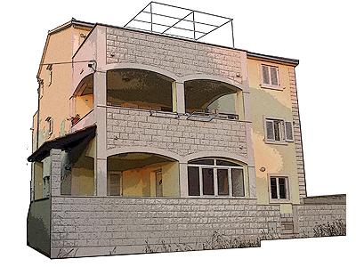 Gli appartamenti sono situati in un tranquillo villaggio sull'isola (MIRC), si trovano vicino alla spiaggia, con vista sul mare. Gli appartamenti sono dotati di cucina, camera da letto, soggiorno, bagno, balcone. Parcheggio. Utilizzo di clima e tassa di soggiorno inclusi!
