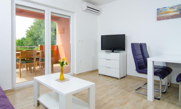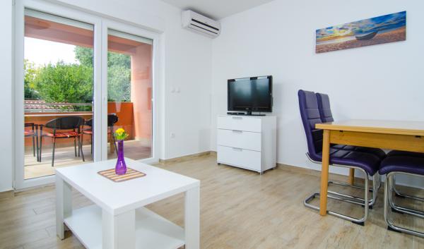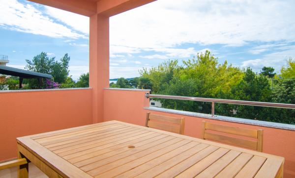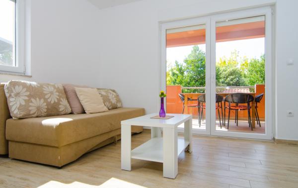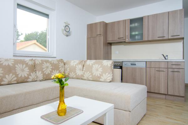 Gli appartamenti erano ancora meglio di quello che sono illustrati nella foto. :) Ci sono tutte le attrezzature necessarie (anche lavastoviglie), stoviglie per mangiare e preparare il cibo, tutte le posate. 10 punti !!! Gli appartamenti dispongono di grande balcone / terrazzo con vista mare (appartamenti secondo piano). Eravamo abituati a fare colazione e trascorrere serate. Il mare è ancora meno di 100 metri dagli appartamenti. Il centro della città - a 300 metri. La città è di per sé ha spiagge molto belle, c'è anche una spiaggia di sabbia di Sv. Filip e Jakov. Consigliamo vivamente appartamenti Maxima per le vacanze everybodies.