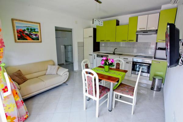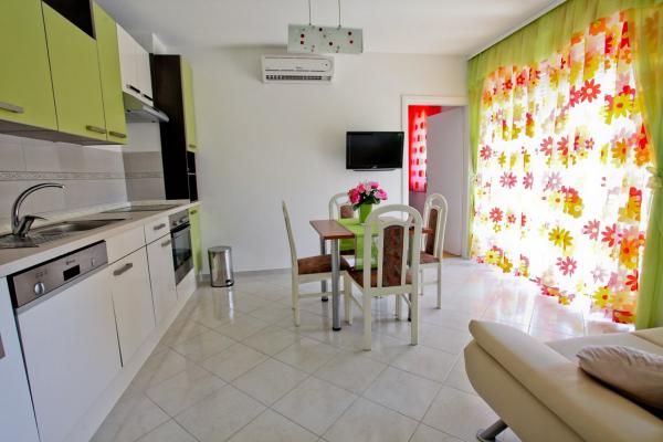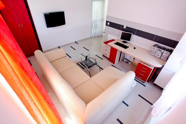 La nuova struttura Villa Palma si trova a soli 120 m dal centro. Completamente attrezzati e moderni appartamenti sono situati in una zona tranquilla di San Filippo James. Si trovano in riva al mare, di fronte al solo campo, e la distanza dalla spiaggia a soli circa 200 m. Il primo negozio è situato a soli 100 metri di distanza. La spiaggia è pulita e bella, e ha una passeggiata verde, il ci sono docce, spogliatoi ed è adatto per bambini piccoli. perché ha un parco giochi con altalene, sabbia, altalene, e per i bambini più grandi e gli adulti vi è un motivo di giocare a pallavolo e caffetterie e fast food. Vicino al centro è un campo da basket, e alcuni negozi e un supermercato. Sulla costa ci sono diverse taverne dove gli ospiti possono gustare piatti locali e pesce, e vi è anche un eccellente pizzeria con altre offerte. L'edificio ha solo 4 appartamenti, di cui 2 su 113 m2 e sono adatti per due famiglie e 8 persone, mentre un appartamento per 4 e uno per 5 persone. Benvenuto e piacevole soggiorno in questa splendida atmosfera