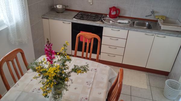 La casa si trova in una nuova località sul case, in terza fila e 20 m sul livello del mare, che offre una bella vista sul mare. La spiaggia è organizzato per i bambini. Vicino al campo con un ristorante. Il villaggio dispone di edicola, bancarelle con verdure, pane. 15 km dalla storica città di Zara. Soprattutto per i bambini orglje interessante e sole. Fino a quando il parco nazionale è di 70 km. Ci sono viaggi con barche nel Parco Nazionale.