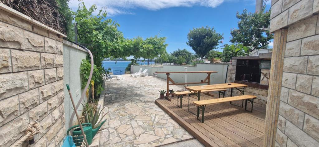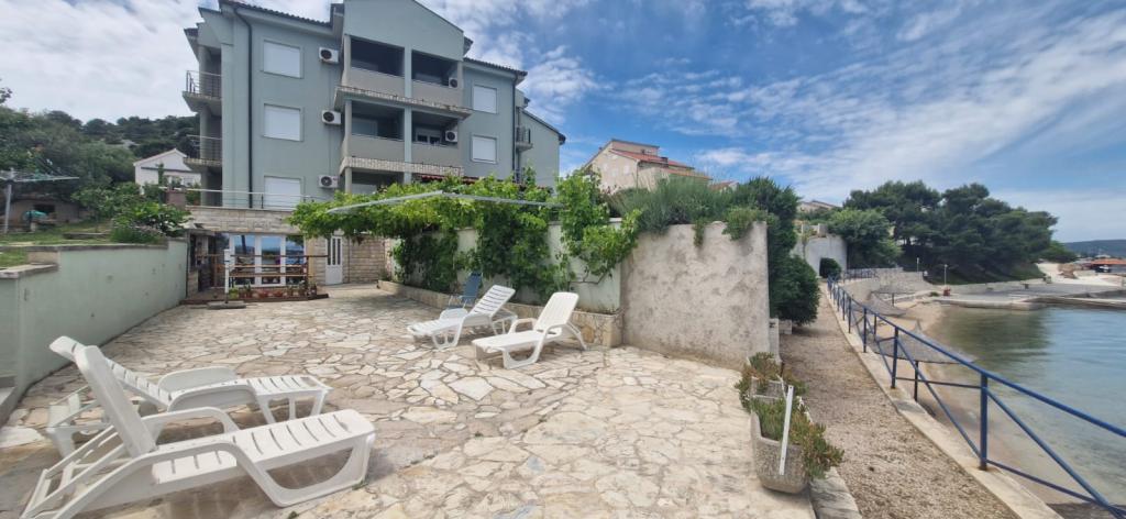 Moderno Apartmai completamente attrezzata e con una piccola spiaggia di sabbia di fronte alla porta d'ingresso, che offre una vista indimenticabile dal balcone. A vostra disposizione è anche una grande terrazza di fronte alle ville, sedie a sdraio, doccia e un grande barbecue.