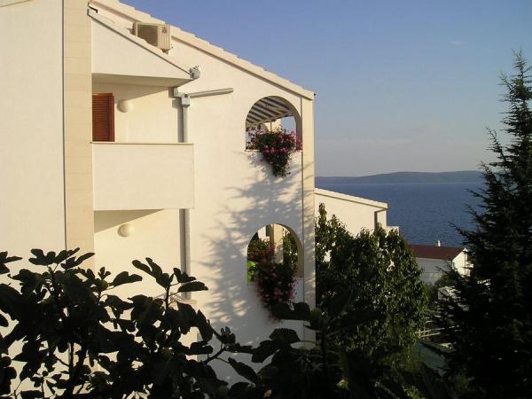 Appartamenti Vicković si trovano sul lato sud dell'isola di Ciovo, nella splendida Mavarcica di distanza dal mare 60 m dalla città di Trogir, a 5 km. L'isola è collegata con la città vecchia. Gli appartamenti sono costruiti in modo che ciascuno ha un salotto, cucina, bagno con wc, camera con balcone e terrazza di 14m2 con vista mare. Avete una scelta di strutture ricettive con e senza aria condizionata. Tutti gli appartamenti hanno un ingresso separato speciale. Tutte le attrezzature e mobili erano nuovi di zecca. Sono dotate di TV satellitare, telefono, e vi è la possibilità di utilizzo di Internet.