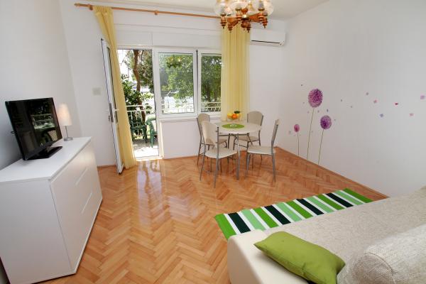 Appartamenti e camere sono situate in Okrug Gornji sull'isola di Ciovo, a 2 km dal centro della città. Si trovano vicino alla spiaggia sabbiosa, molto conveniente per bambini e famiglie. Tutti gli appartamenti hanno vista mare e sono dotate di aria condizionata e connessione internet wireless e un parcheggio. La casa dispone di un ormeggio per una barca fino a circa 7 metri, con un pagamento supplementare. Gli ospiti possono usufruire del giardino e della casa, così come un barbecue.