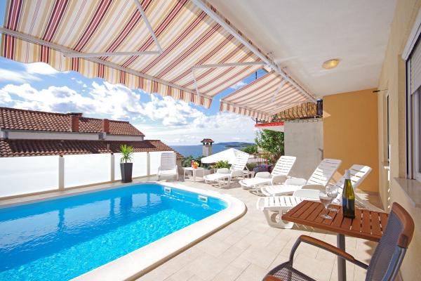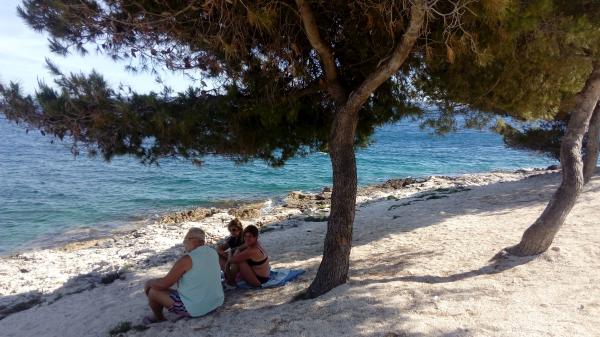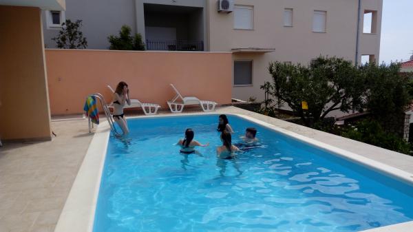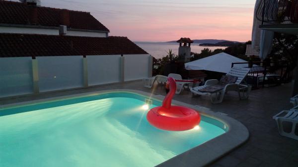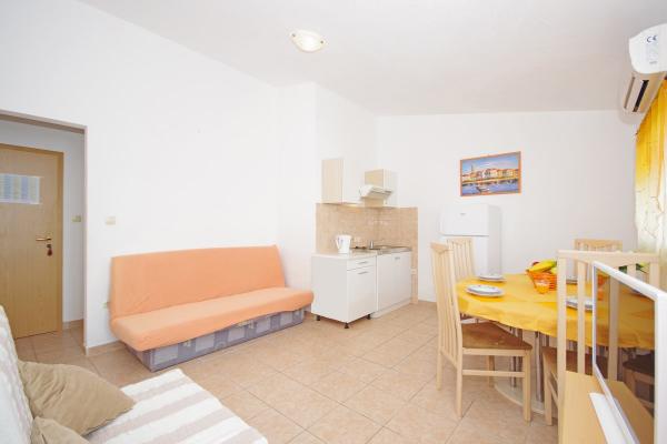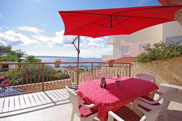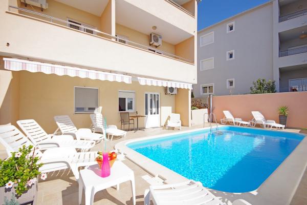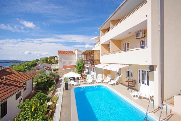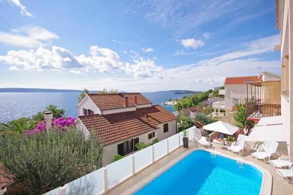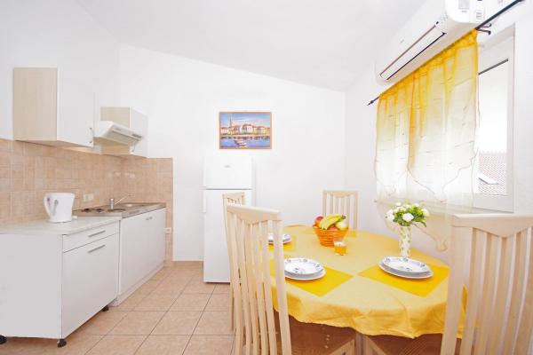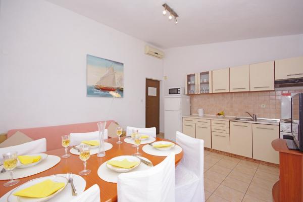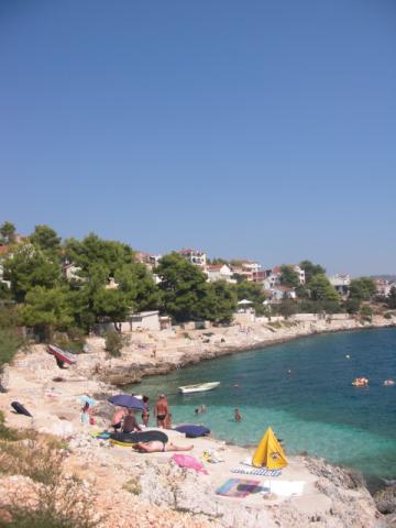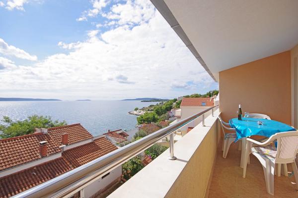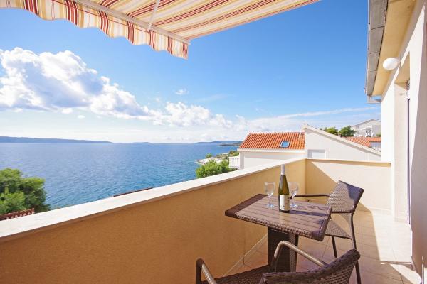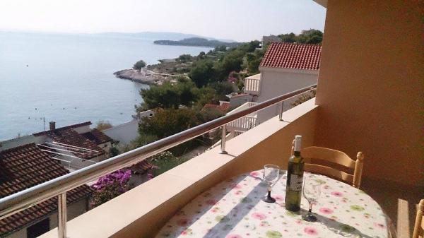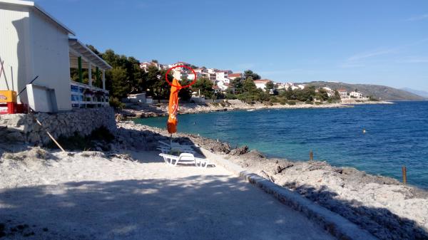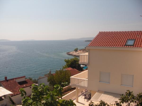 Gli appartamenti sono situati in una tranquilla baia nella parte sud dell'isola di Ciovo, secondo posto per il mare e tutte rivolte verso il mare aperto. A breve distanza dalla casa di un ristorante con una spiaggia e campi sportivi e la baia continua a la natura quasi incontaminata, spiagge naturali e boschi di pini. D'altra parte, tutte le strutture necessarie urbano e la vita notturna si trova nel centro, che ha un sacco di caffè, ristoranti e una bella passeggiata. Un vantaggio particolare è la vicinanza di Trogir, che è un monumento ricco di monumenti storici.