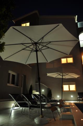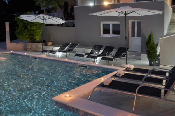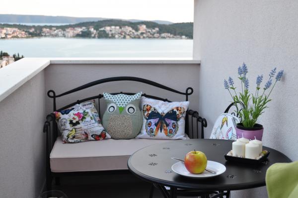Bonaria appartamenti sono situati sulla parte elevata dell'isola di Ciovo, Balan, in una casa moderna ristrutturata nel 2014. La casa di famiglia dispone di cinque lussuose suite con balcone, una grande piscina, parcheggio, grill all'aperto e un parco giochi per bambini organizzato presso la piscina. A nord, circondato dal silenzio di una fitta pineta a sud aperto a una vista mozzafiato sul mare e splendidi tramonti. Dalla città storica di Trogir è a soli 700 metri dall'aeroporto Resnik si trova a 5 km dalla città di Spalato 25 km. Sull'isola di Ciovo ci sono numerose spiagge, la più famosa Saldun spiaggia, con vista sul porto turistico e le numerose attività diurne e notturne, come bar sulla spiaggia, sport acquatici e le immersioni. Non si vuole godere la pace e il suono delle onde scegliere una delle spiagge più piccole, più tranquille, sparsi in tutta l'isola, lontano dalla folla.
