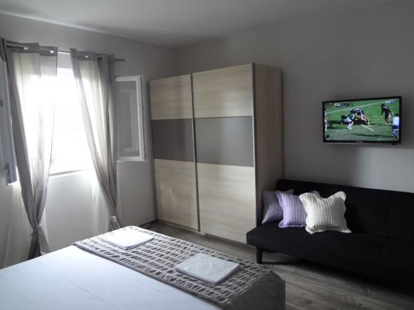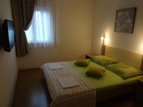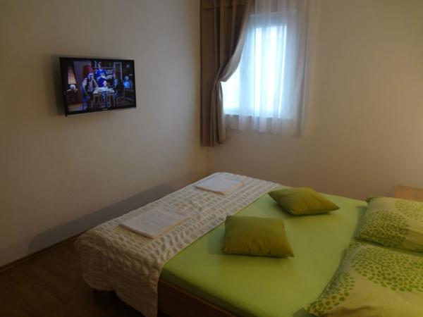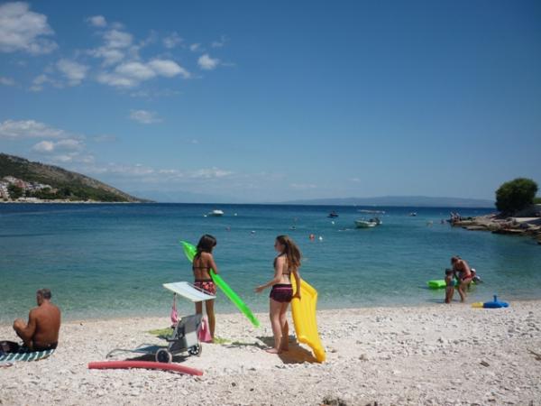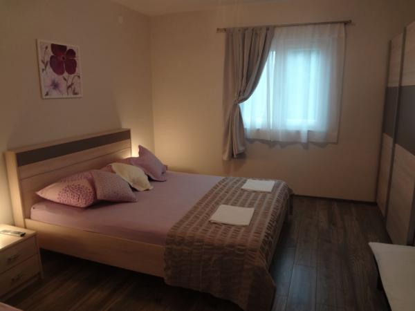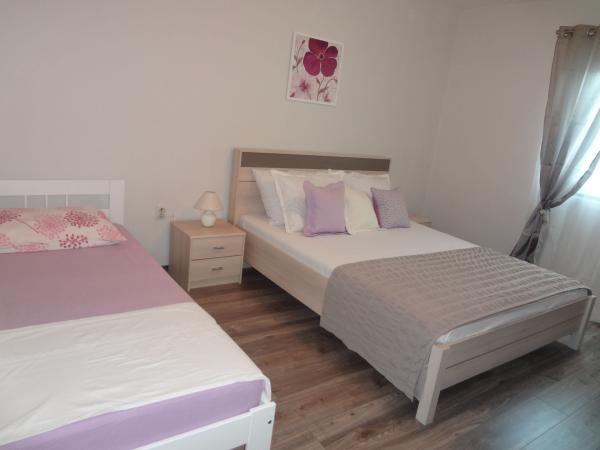 Offriamo due suite (tre stelle). Entrambi gli appartamenti sono al primo piano. Appartamento A3 +1 dispone di due camere da letto e un divano letto nel soggiorno, appartamento A2 +2 ha una grande camera con un letto matrimoniale, un letto singolo e un divano letto. Entrambi gli appartamenti hanno letti matrimoniali, cucina ben attrezzata, ampio frigorifero, bagno, parcheggio, aria condizionata, doccia esterna, barbecue e terrazza. Okrug Gornji si trova su Ciovo che è collegata con la terraferma. Ecco, questo è fondamentalmente si tratta di isola e la terraferma allo stesso tempo. Si può viaggiare senza alcun pagamento, al continente o in qualsiasi altra città con la vostra auto attraverso il ponte, che è aperto 24 ore al giorno. Da Okrug Gornji si può andare a Trogir in auto, bus e battello. Trogir è di 2-4 km da Okrug Gornji e Spalato si trova a soli 27 km dal resort. Okrug Gornji è famosa per il suo mare cristallino e 2 km lunga spiaggia di ghiaia Copacabana. Trogir, la natura originaria incontaminata, è molto interessante per fare jogging.