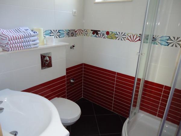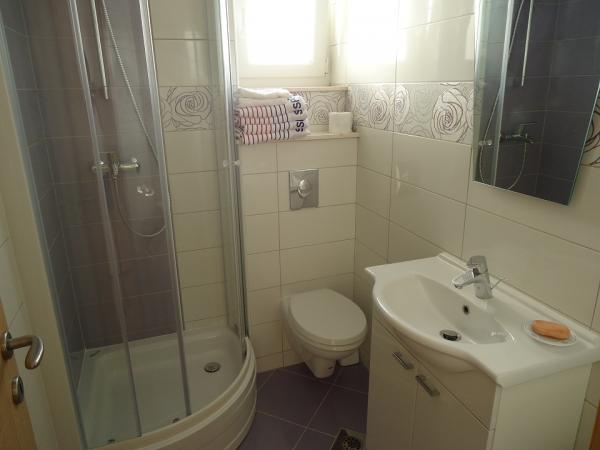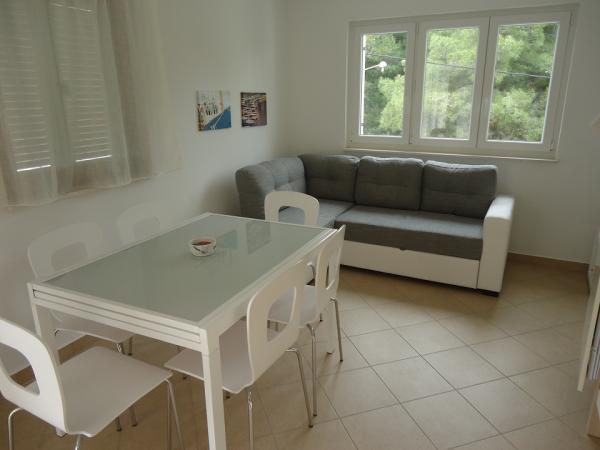 Gli appartamenti nuovi e lussuosi in un tranquillo piccolo villaggio Okrug Gornji sull'isola di Ciovo. Ciovo è un'isola collegata da un ponte alla terraferma. Ogni appartamento dispone di due camere da letto, una grande cucina attrezzata con tutti gli elettrodomestici necessari, TV LCD satellitare, connessione internet wireless gratuita, e ogni appartamento ha una grande terrazza o balcone. Una spiaggia di ciottoli, a 100 metri dagli appartamenti e il più popolare di Ciovo per le famiglie con bambini, perché non è affollato e ha un sacco di ombra sulla spiaggia a causa delle pinete. Anche la casa ha diverse piccole spiagge sulle rocce che offrono una maggiore privacy. Negozio si trova a 300 metri dall'appartamento.