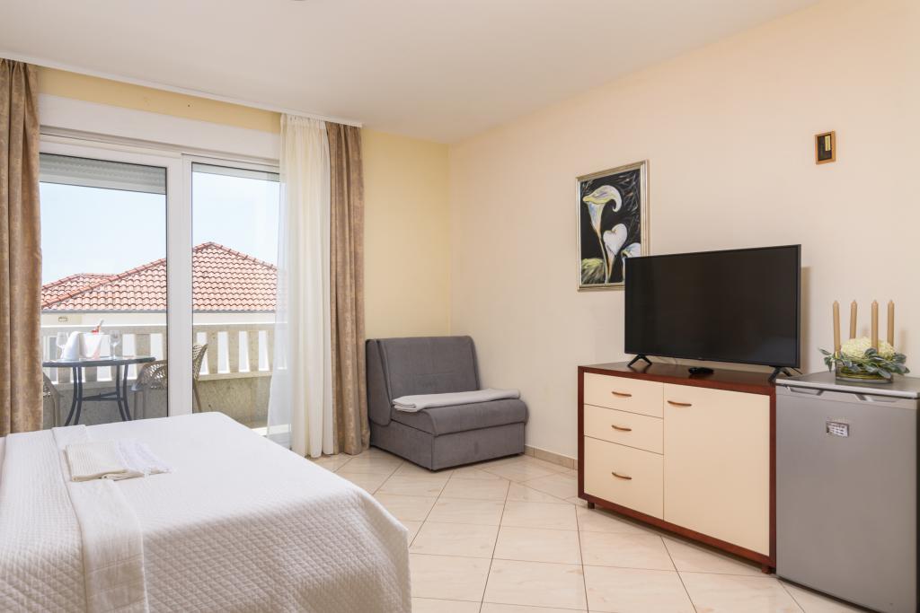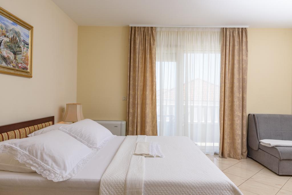 La tassa di soggiorno è inclusa nel prezzo.Appartamento A2 tipo 2 (51m2) - Ampio soggiorno con cucina e un letto per due persone, una camera matrimoniale, bagno e balcone (12m2). Appartamento tipo / monolocale A2 1 (30m2) - soggiorno con cucina, letto matrimoniale, divano razvalčenje letto singolo, bagno e balcone (6,5m2). Appartamento tipo / appartamento A2 (26m2) - soggiorno con angolo cottura, letto matrimoniale, bagno e balcone (6,5m2) vivente. Tutti i nostri ospiti possono utilizzare una griglia con un forno a legna nel giardino e godersi il pranzo e la cena alle ore più tardi in totale privacy. Per tutti gli ospiti è un fronte prakig privata della casa.