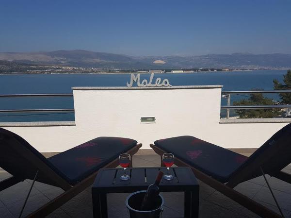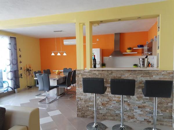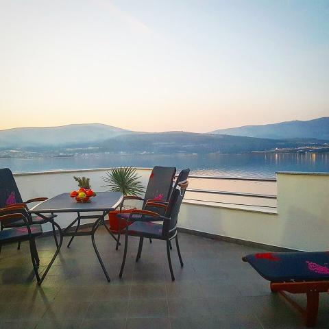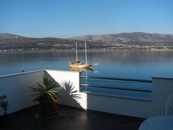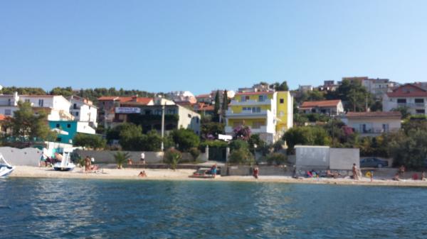 Gli appartamenti sono situati sull'isola di Ciovo, in un luogo tranquillo Okrug Gornji, sulla spiaggia con vista sul mare. Gli appartamenti arredati recentemente rinnovate e modernamente hanno cucina completamente attrezzata, TV satellitare e aria condizionata, connessione internet Wi-Fi. Appartamento1 di lusso (2 2) si trova al 2 ° piano della casa e la zona è 65m2 con 35m2 terrazzo. Questo enorme terrazzo sarà un luogo per le memorie e piaceri di prendere il sole memorabili e uniche e rilassante su sedie a sdraio e rilassarsi nella vasca idromassaggio all'aperto. si affaccia sul mare. Suite di lusso è composto da una camera da letto, un bagno e un ampio soggiorno con cucina. E 'completamente nuova arredata con tutti gli elettrodomestici. Appartamento no. 2 e NO. 3 (2 2) si trovano al 2 ° piano, ma dall'altro lato della casa. I due appartamenti sono di dimensioni di circa 35 m2, una camera da letto, bagno, cucina, soggiorno con divano letto per due, una terrazza 5m2 con vista mare. Dispongono di aria condizionata, barbecue e parcheggio. Gli appartamenti sono piccole 2 km dalla città dell'Unesco di Trogir.