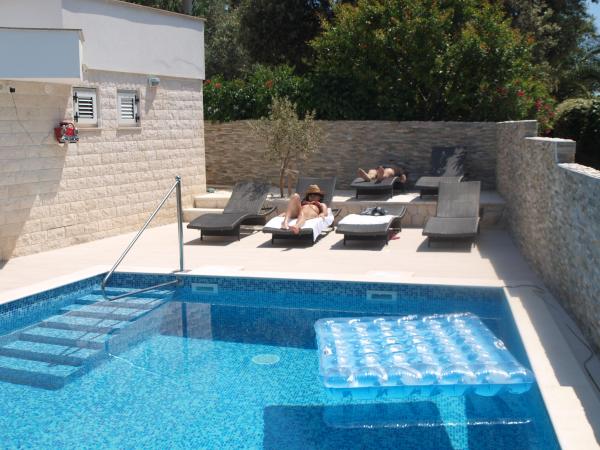 Appartamenti Marko sono situati in una zona tranquilla dell'isola di Ciovo, a Okrug Donji vicino Trogir, che è sotto la protezione dell'UNESCO. Appartamenti Marko sono situati a 100 metri dalla spiaggia, raggiungibile lungo il percorso attraverso la bellissima pineta e macchia mediterranea verdi. Ogni appartamento è completamente attrezzato e moderno piscina TV / ora condizionata, internet, 2 condizionatori, 2 bagni, soggiorno, cucina, parcheggio, e una terrazza con vista sulla struttura more.Pored stata costruita di 34 m2. La città di Trogir è vicino che ti dà la possibilità di godere dei 4000 anni di storia e di godersi la vita notturna. Gli ospiti possono essere organizzate attraverso le agenzie di noleggiare barche, scooter, e gite giornaliere alle isole vicine. L'aeroporto dista 10 km da casa. L'aeroporto è facilmente in grado di noleggiare un veicolo privato.