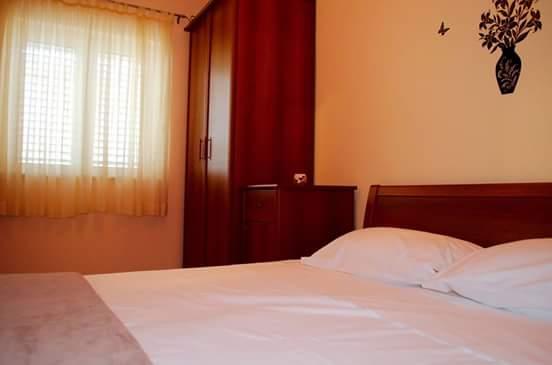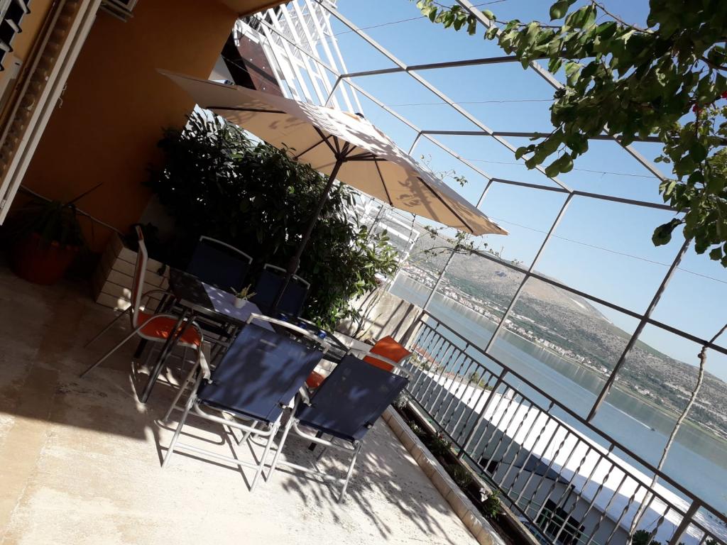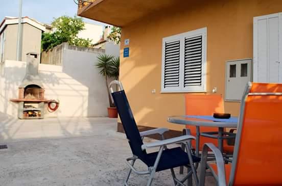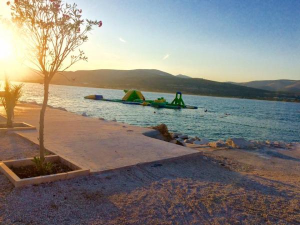 Appartamento Sunset si trova in un posto tranquillo Mastrinka a 3 km dal centro di Trogir. Può ospitare fino a 6 persone (4 2). È classificato con 3 stelle e ha un giardino di 60 m2. Include cucina con tutti gli elettrodomestici, piano cottura, frigorifero e congelatore, lavastoviglie, tostapane, TVsat PS 3, lettore USB e forno a microonde. Tutte le camere hanno vista sul mare. Il bagno ha una lavatrice e asciugatrice e l'appartamento ha due condizionatori d'aria (soggiorno e corridoio). Due camere offrono comfort e vista sul mare. I dintorni tranquilli e la vicinanza alla spiaggia offrono la vacanza di cui avete bisogno. L'appartamento si trova a 350 metri dalla spiaggia, dove si trova un parco giochi per bambini, una doccia e altre attività di moto d'acqua. L'appartamento ha le attrezzature per la pulizia necessarie, un ferro da stiro e un asse da stiro. Nel cortile è un barbecue e accessori e posto auto. La terrazza ha un tavolo e sedie per 6 persone con un gazebo. A 500 metri di distanza troverete una caffetteria con parco giochi per bambini e un ristorante e una caffetteria sulla spiaggia con parco acquatico.