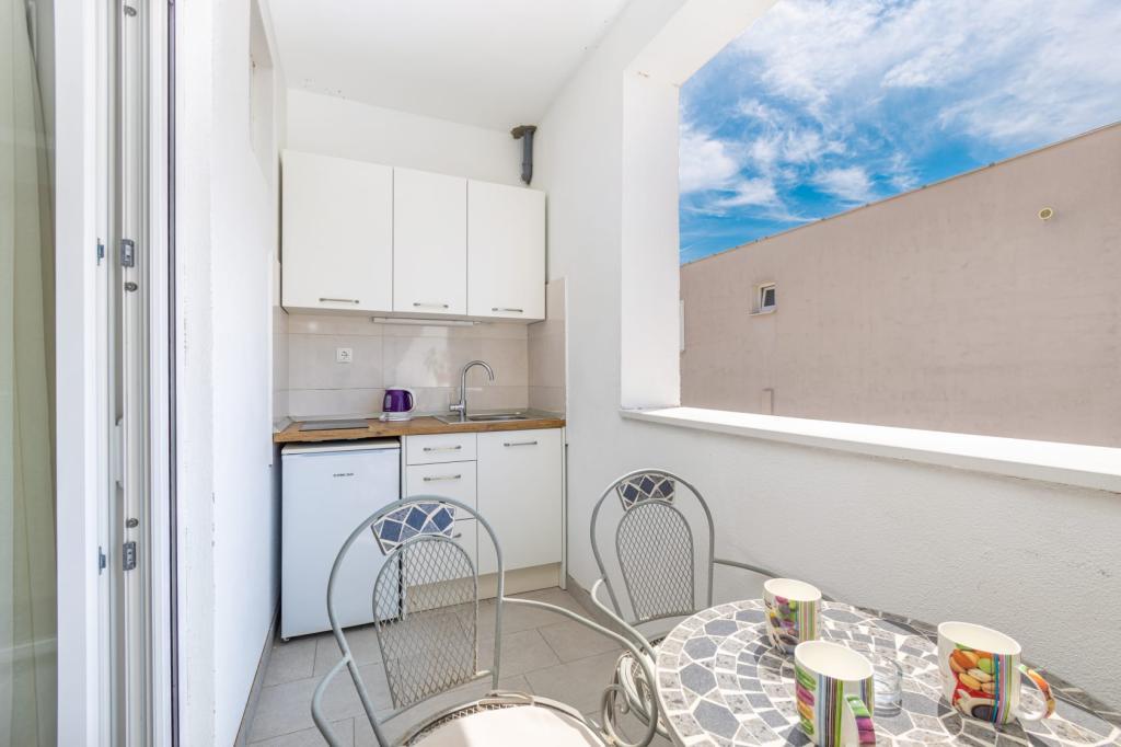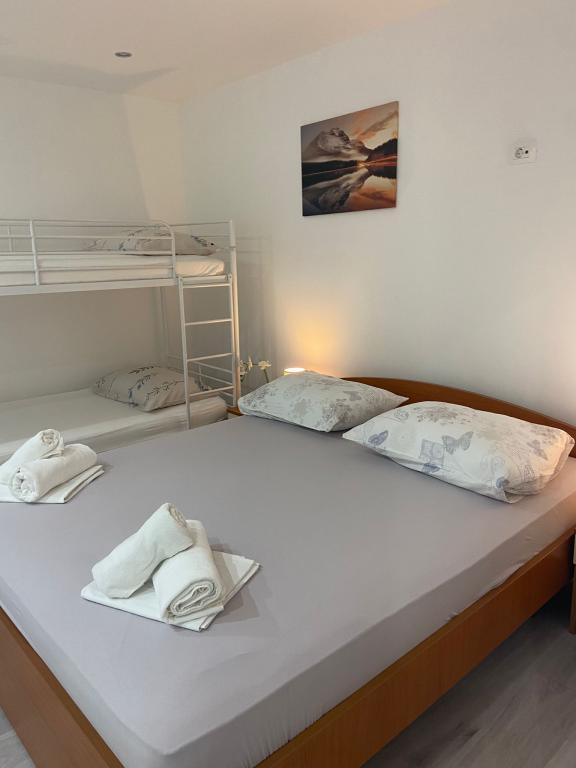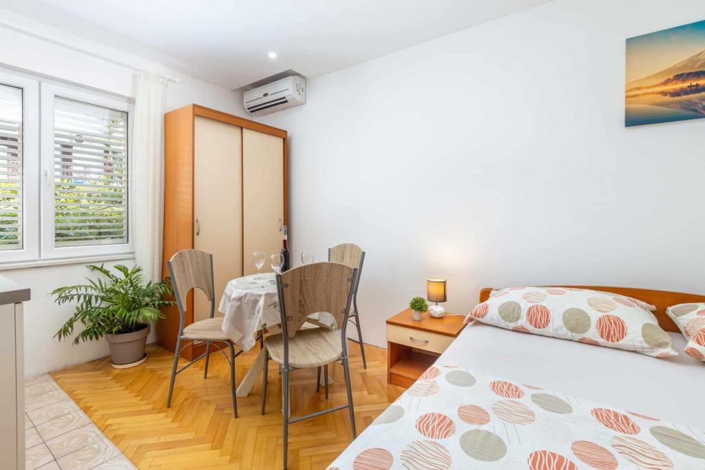 Monolocale Tucepi Anita. Appartamento monolocale e cucina completamente attrezzata, letto matrimoniale, letto a castello, aria condizionata, bagno, terrazza, balcone, biancheria da letto, asciugamani, parcheggio gratuito, letto aggiuntivo su richiesta, culla Qui c'è una spiaggia a 200 metri dall'appartamento,. cioè fino a 4 minuti di sabbia. La spiaggia è molto grande, ci sono ombre, la spiaggia è piccola. Negozi, ristoranti, bar sono molto vicini all'appartamento, fino a 100 metri.